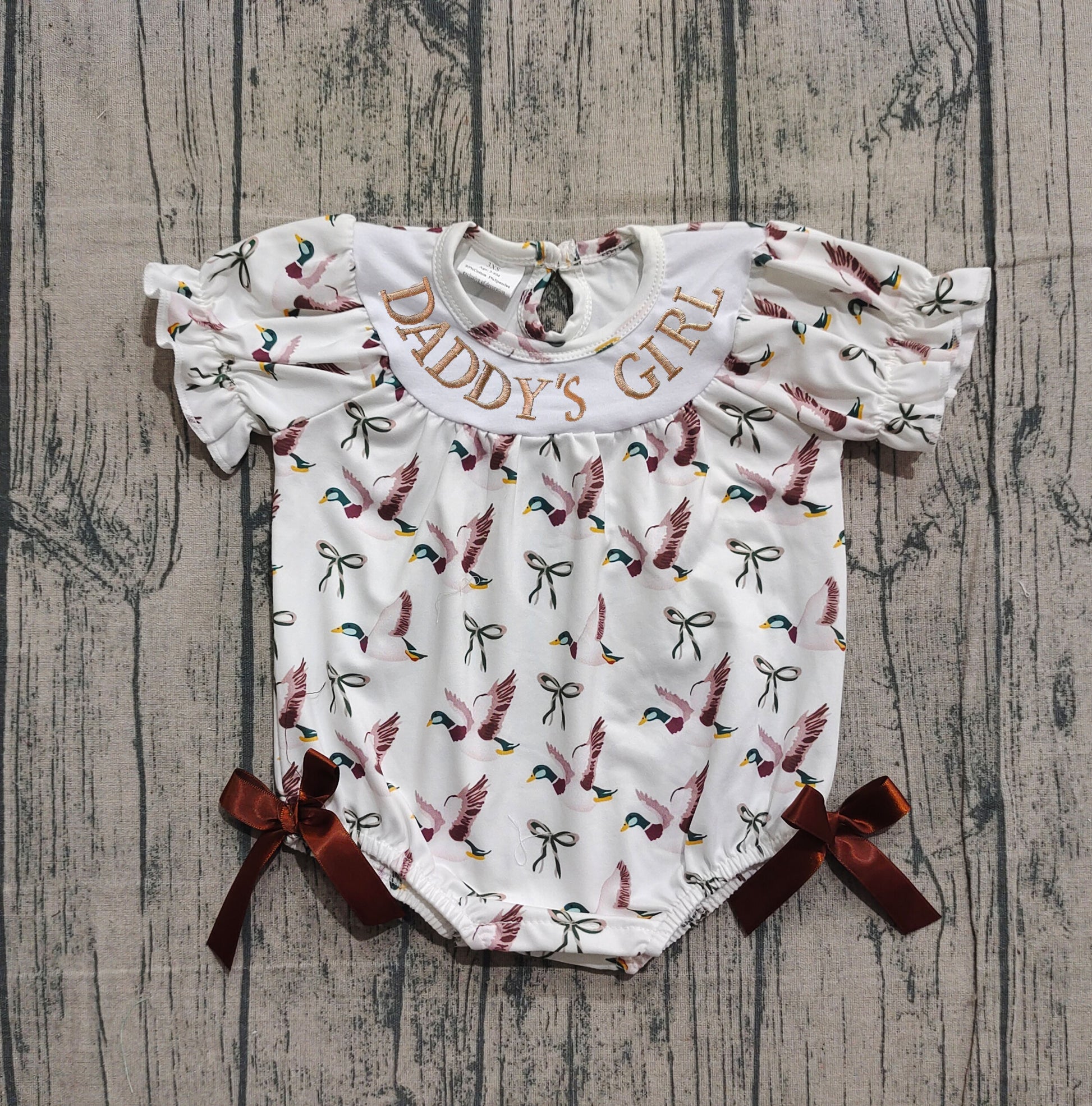 Short sleeves daddy's girl duck bow baby girl romper