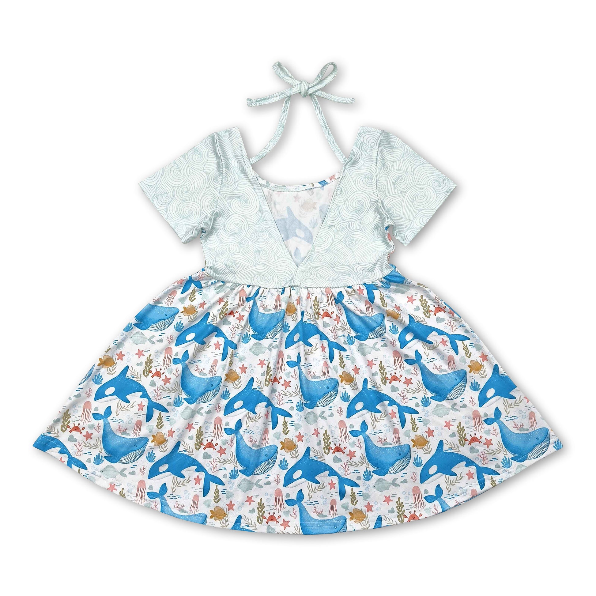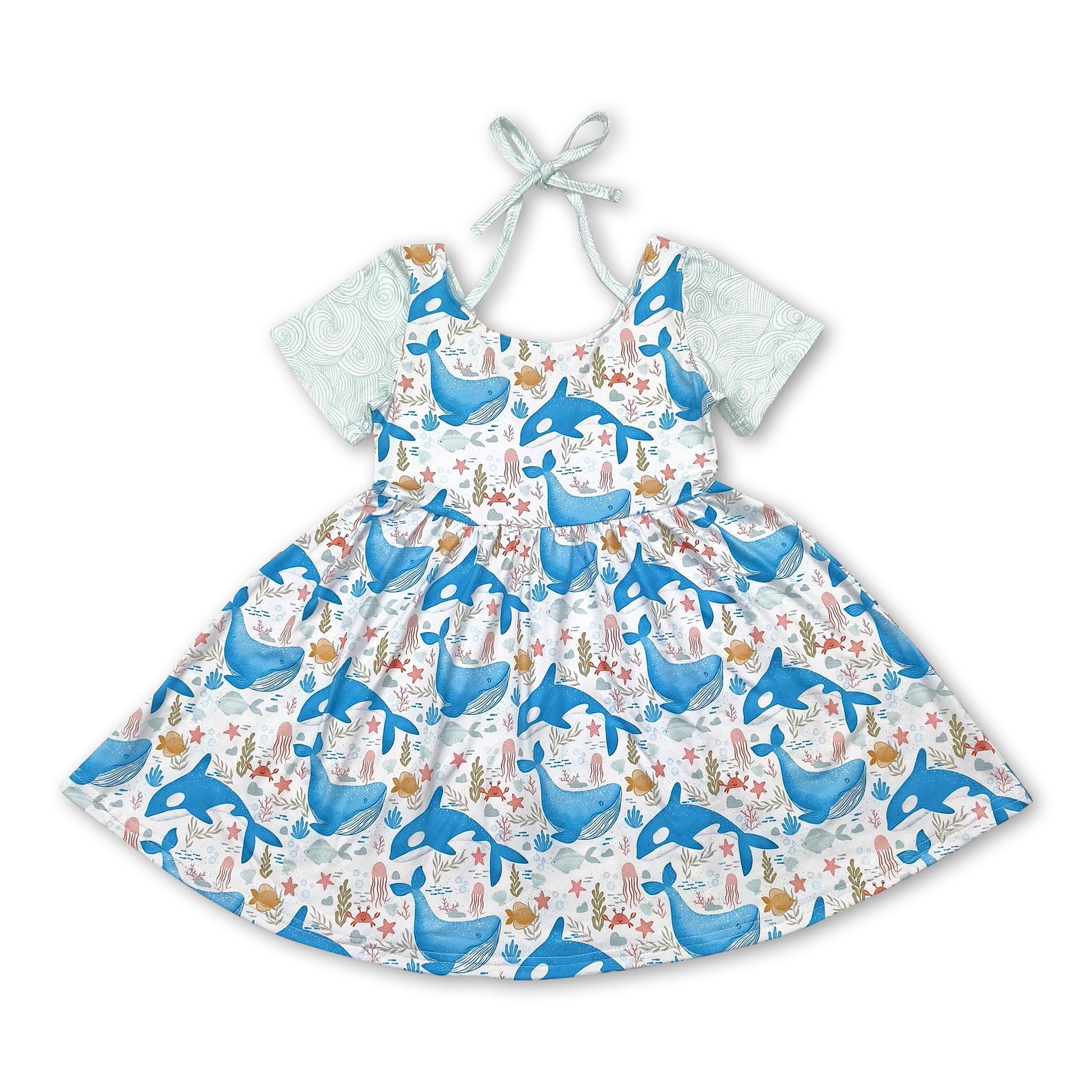 Short sleeves dolphin seaweed kids girls summer dress