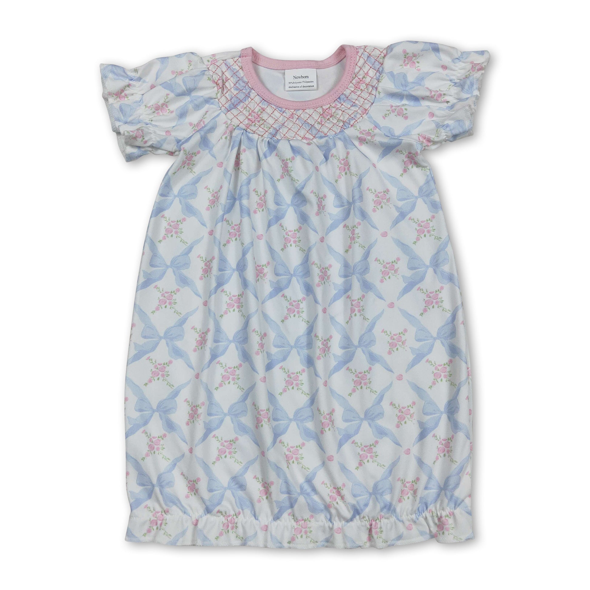 Short sleeves floral bow embroidery baby gown