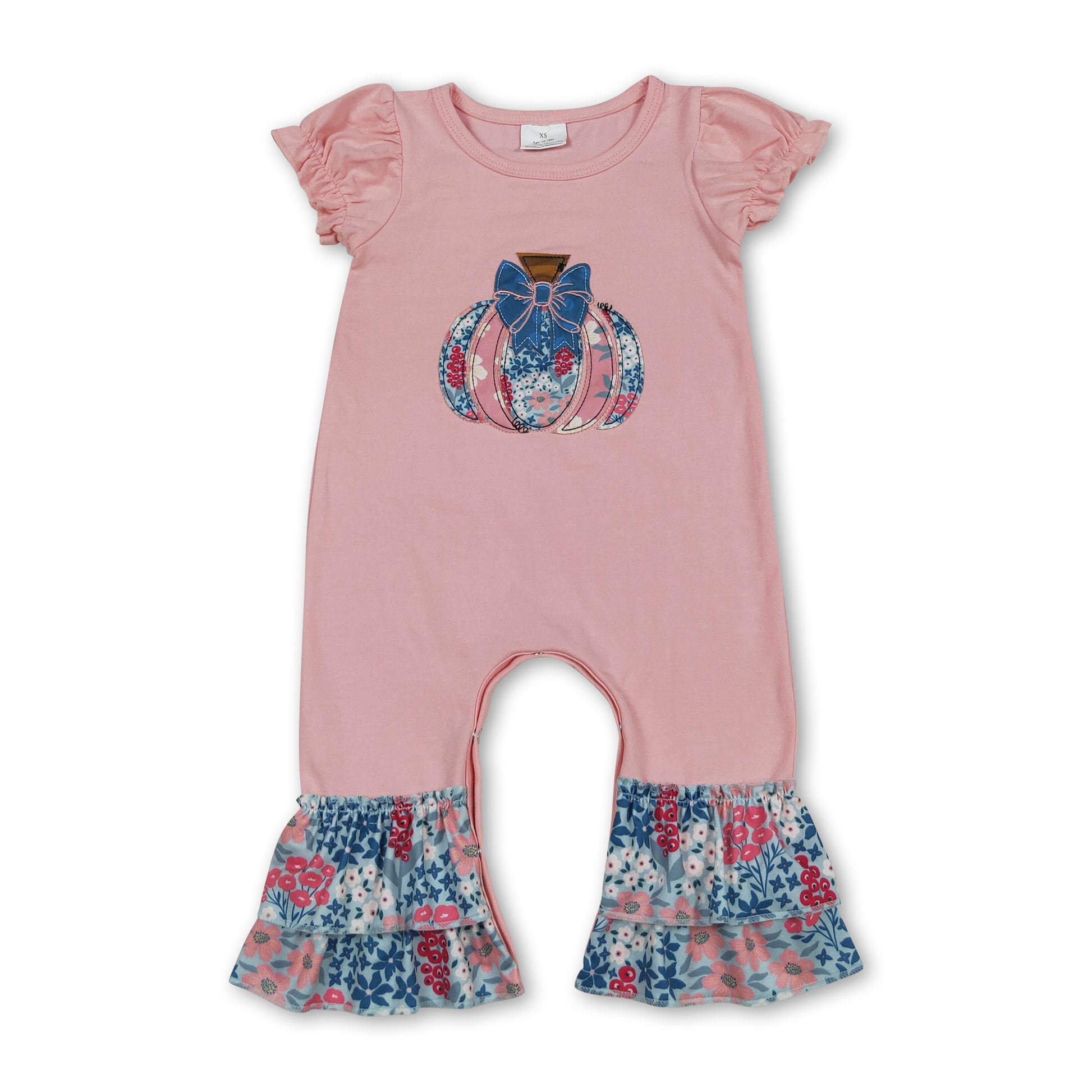 Short sleeves floral pumpkin bow baby girl fall romper