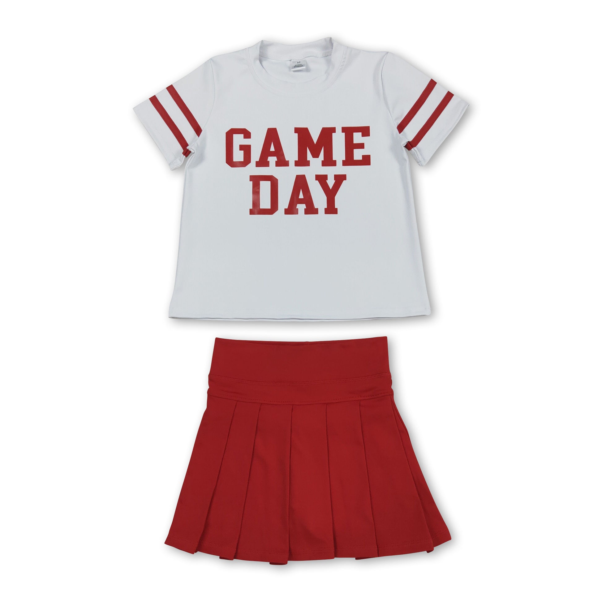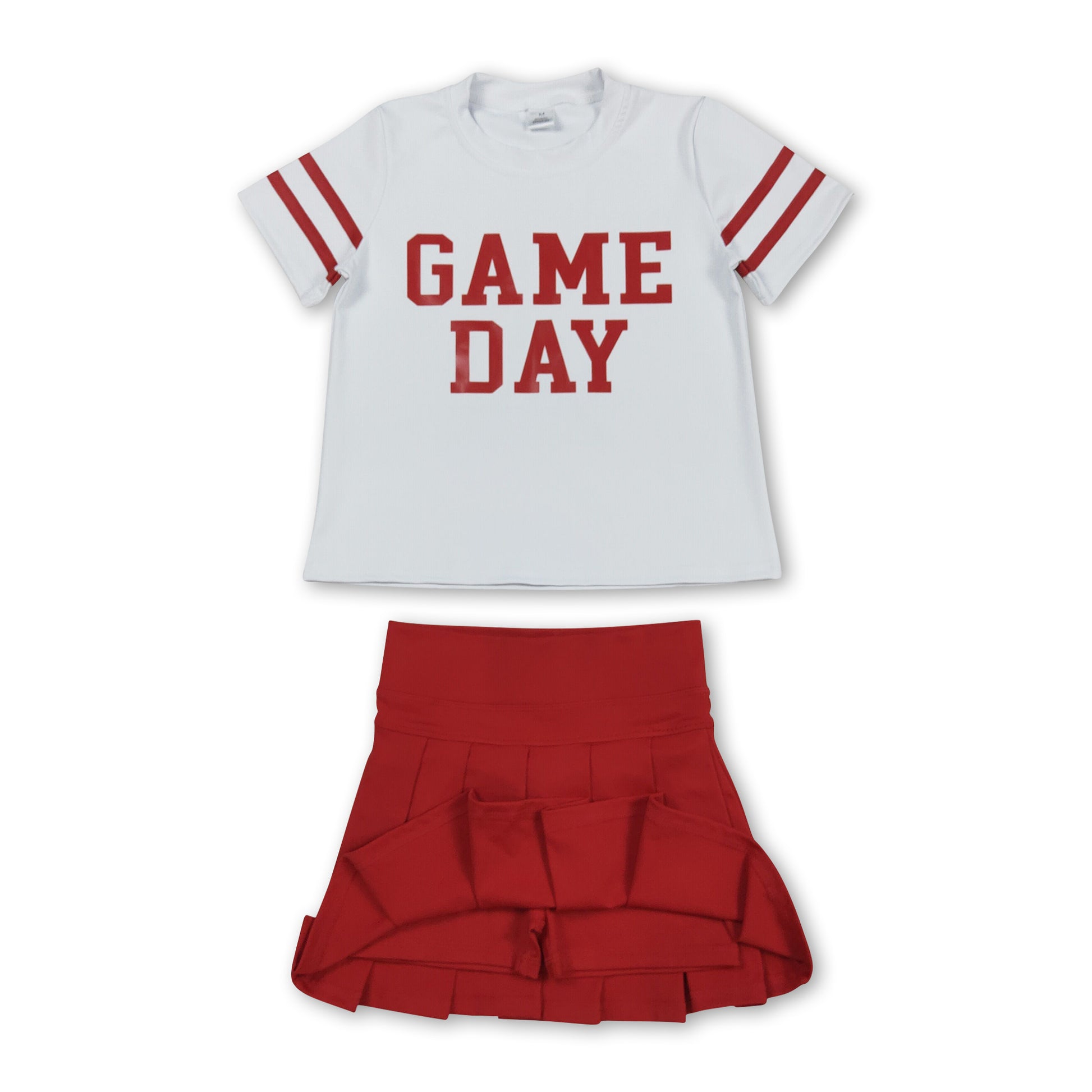 Short sleeves game day top red pleated skirt girls team clothes