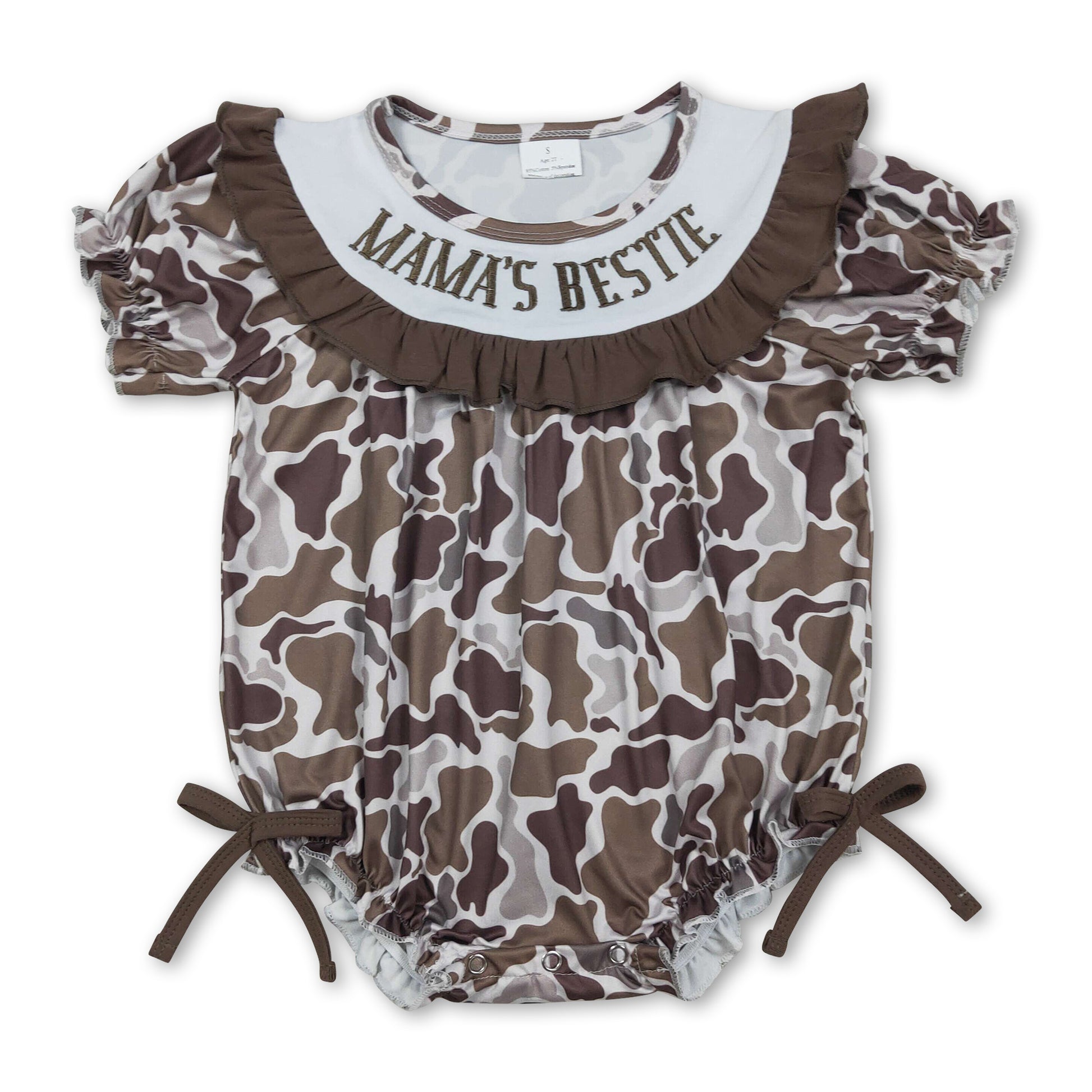 Short sleeves Mama's bestie embroidery camo girls romper