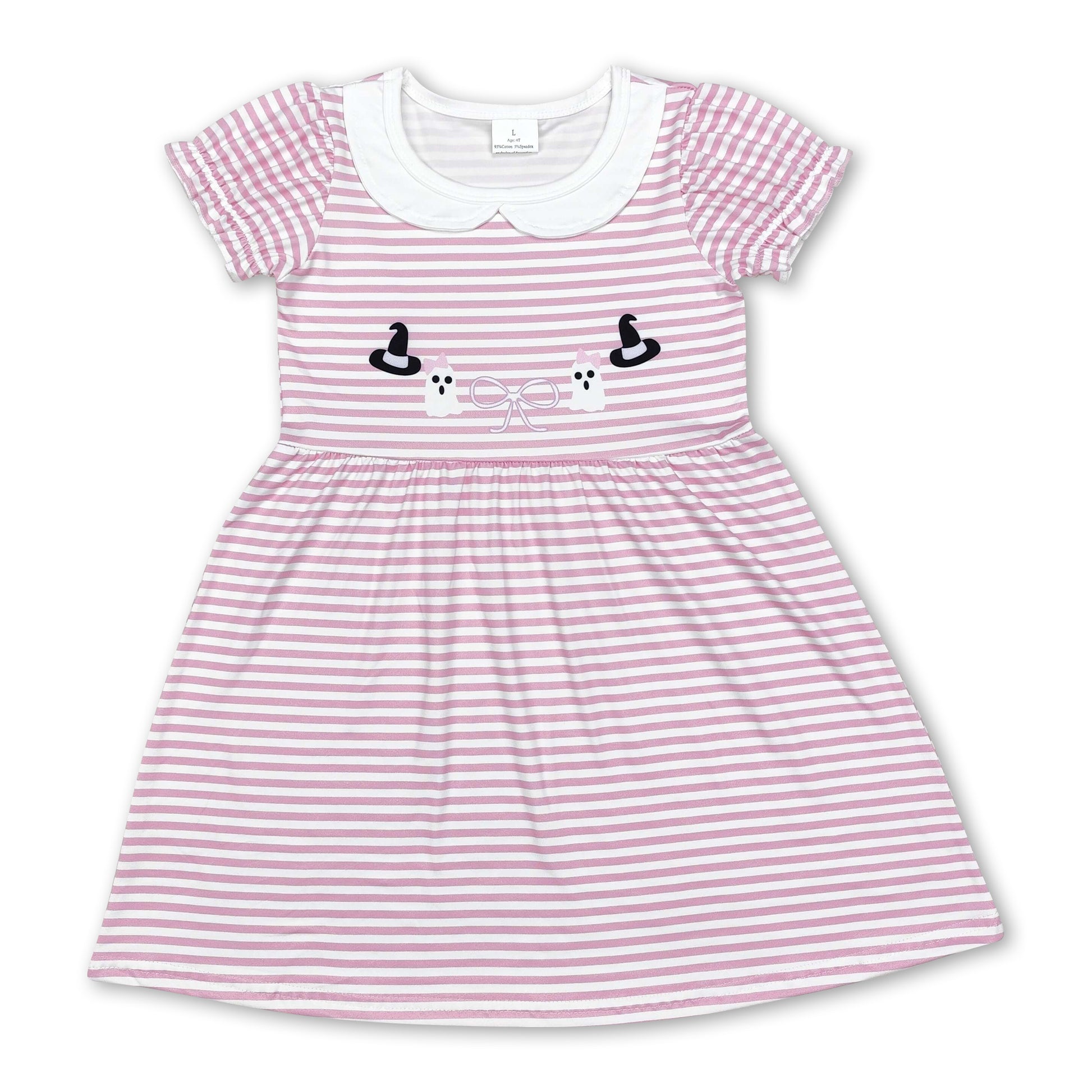 Short sleeves pink stripe ghost baby girls Halloween dress