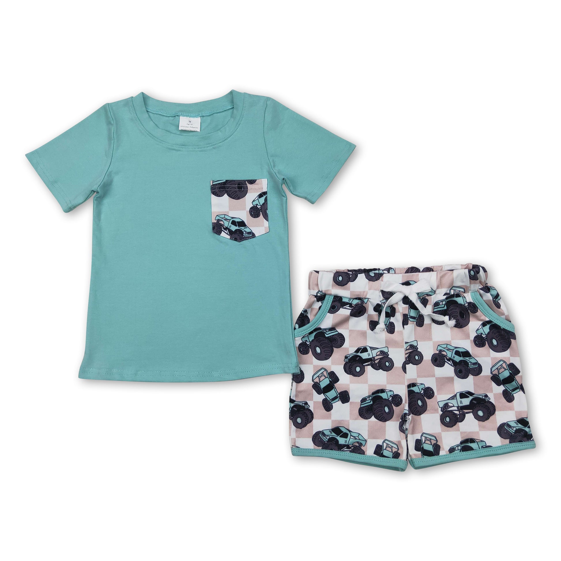 Short sleeves pocket top plaid trucks shorts boys clothes