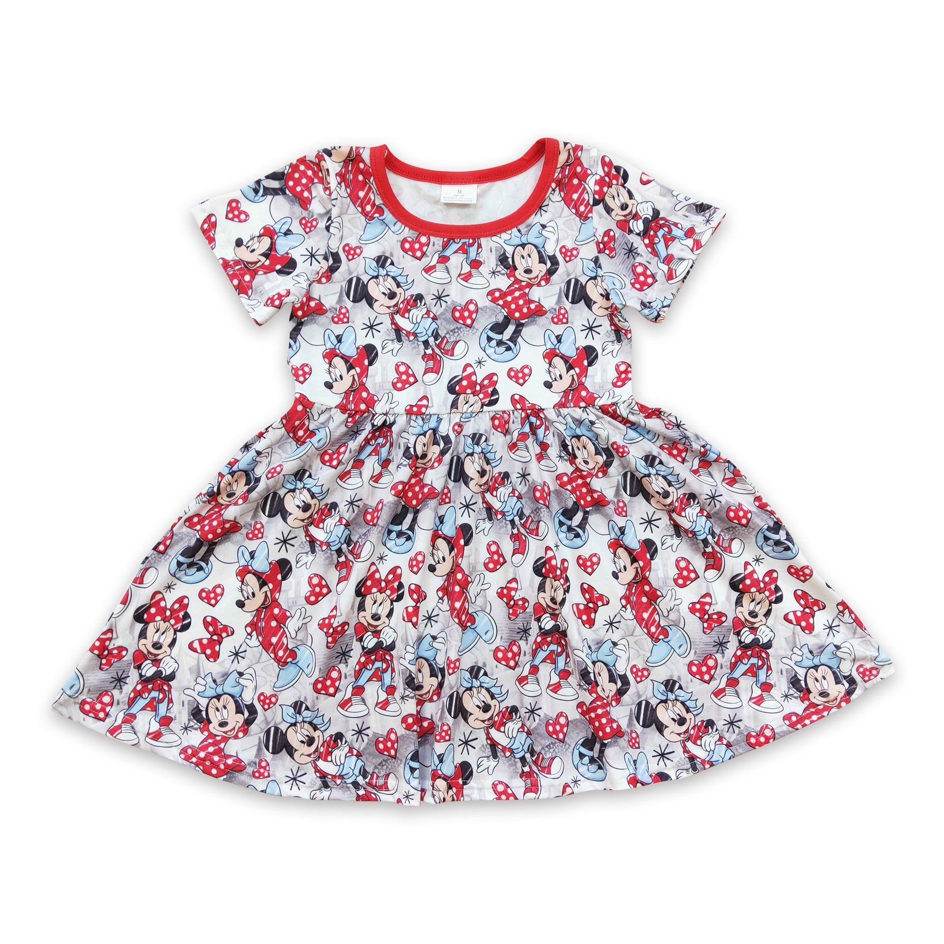 Short sleeves polka dots mouse heart baby girls valentine's dresses