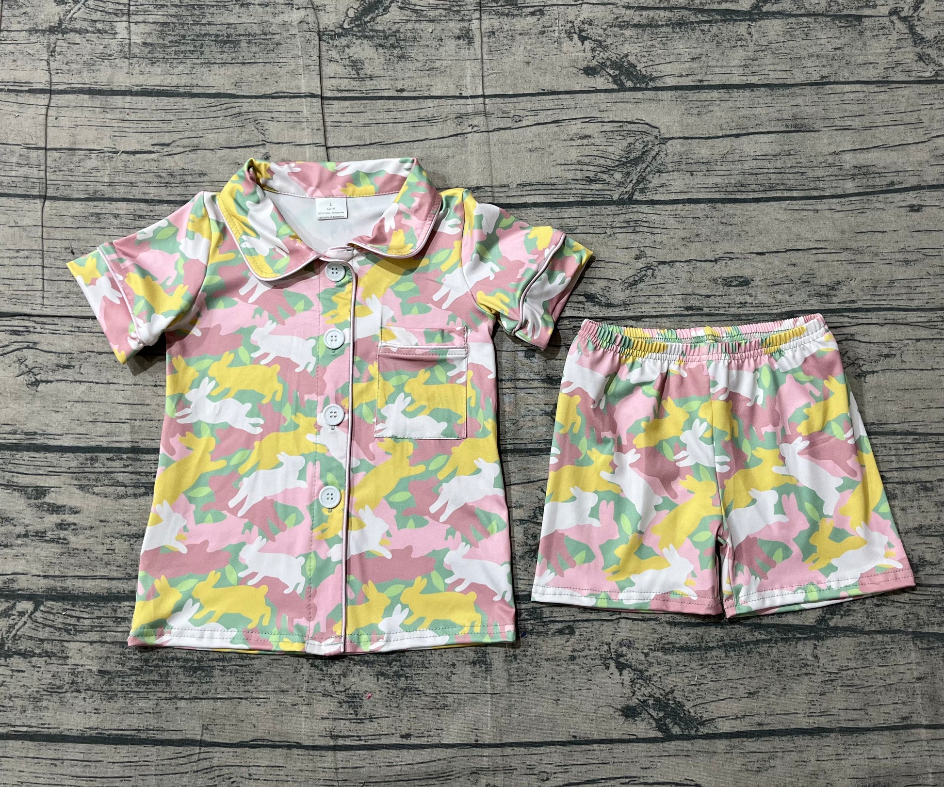 Short sleeves rabbit camo kids girls Easter button down pajamas