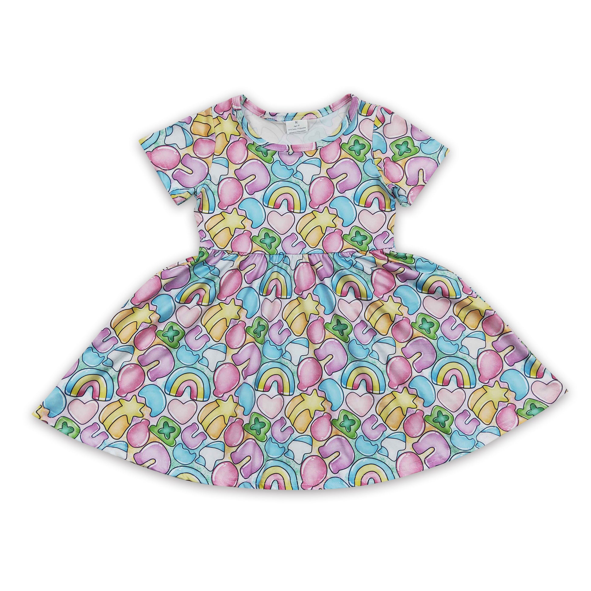 Short sleeves rainbow kids girls st patrick's day twirl dress