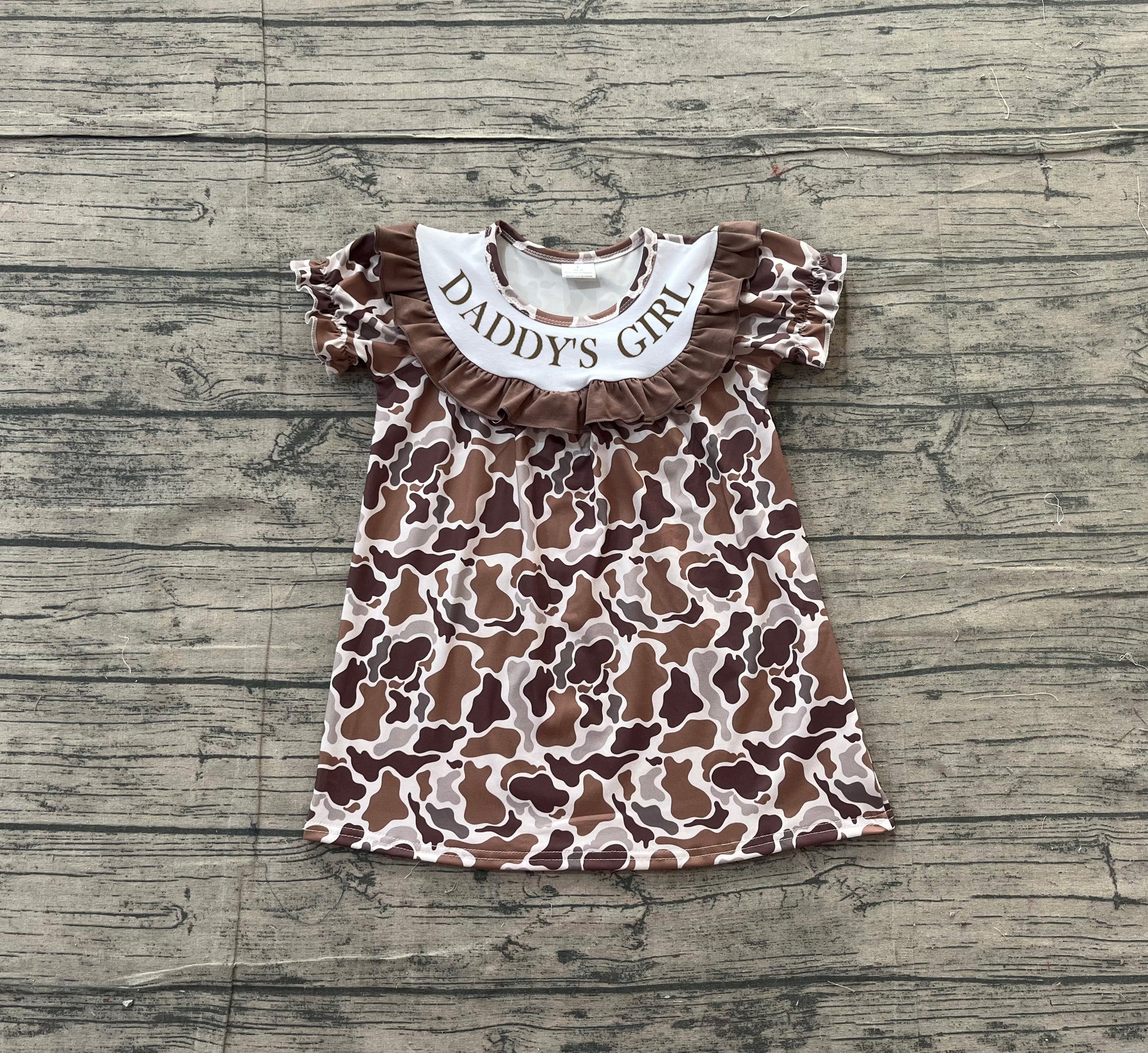 Short sleeves ruffle daddy's girl camo kids dresses