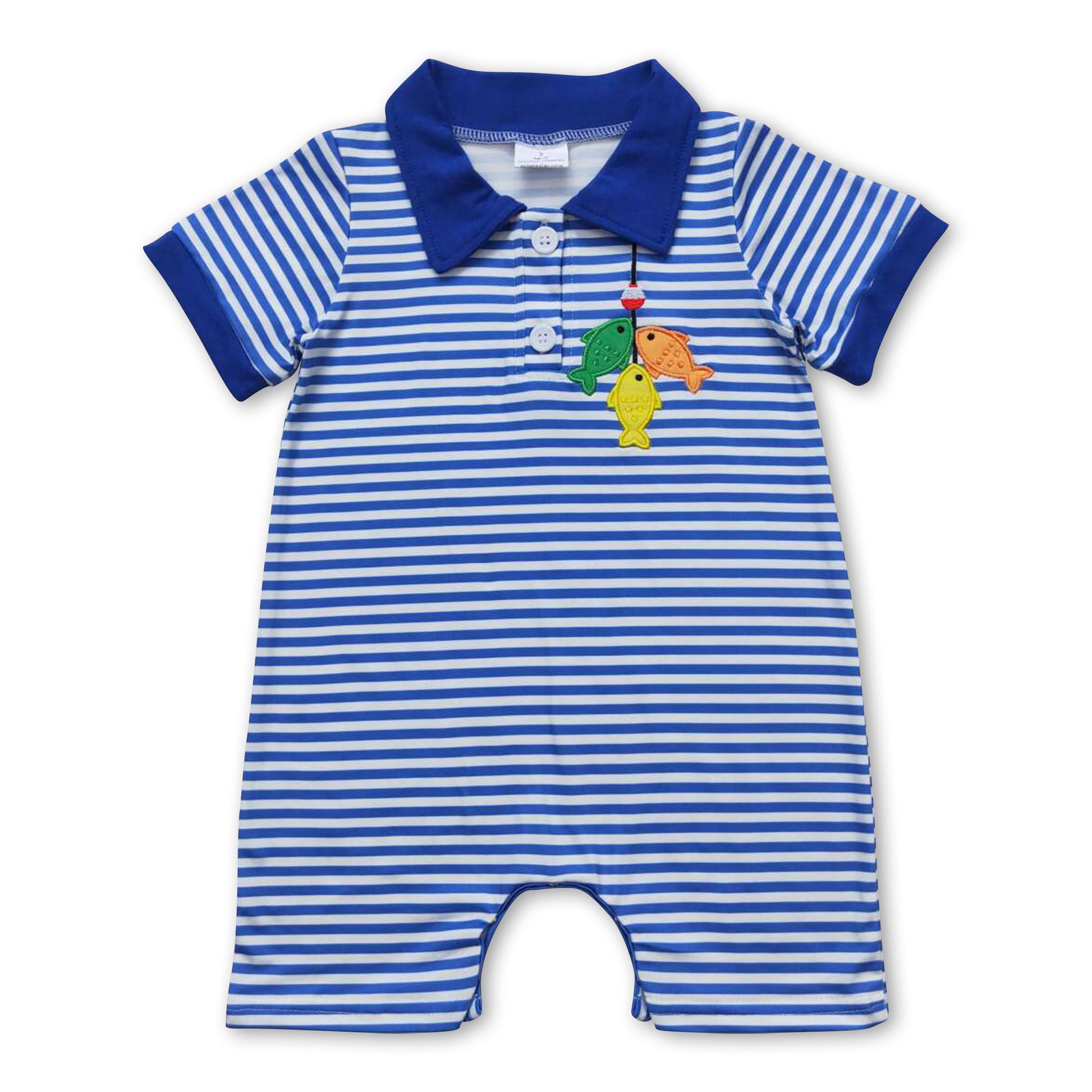 Short sleeves stripe fishing baby boy polo romper