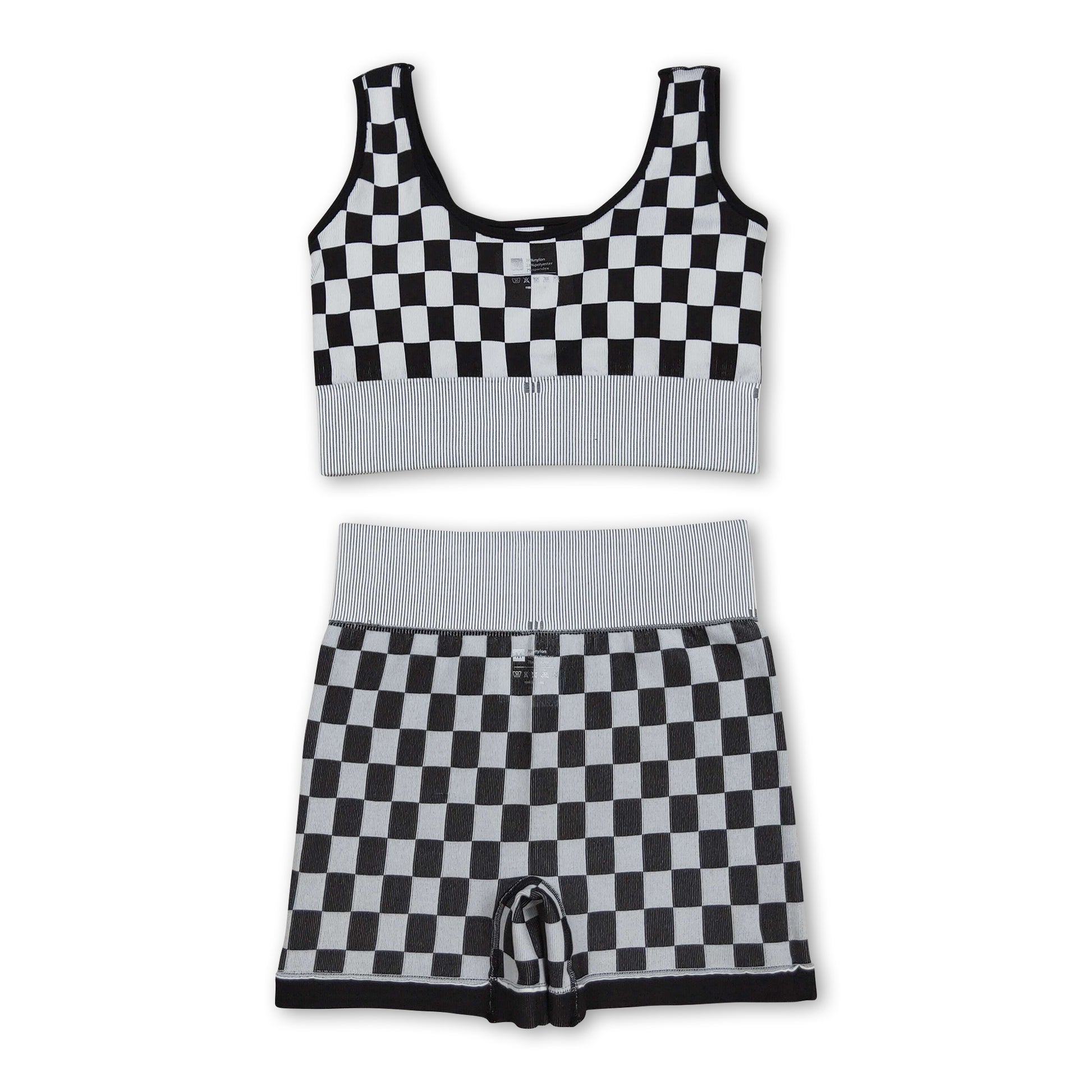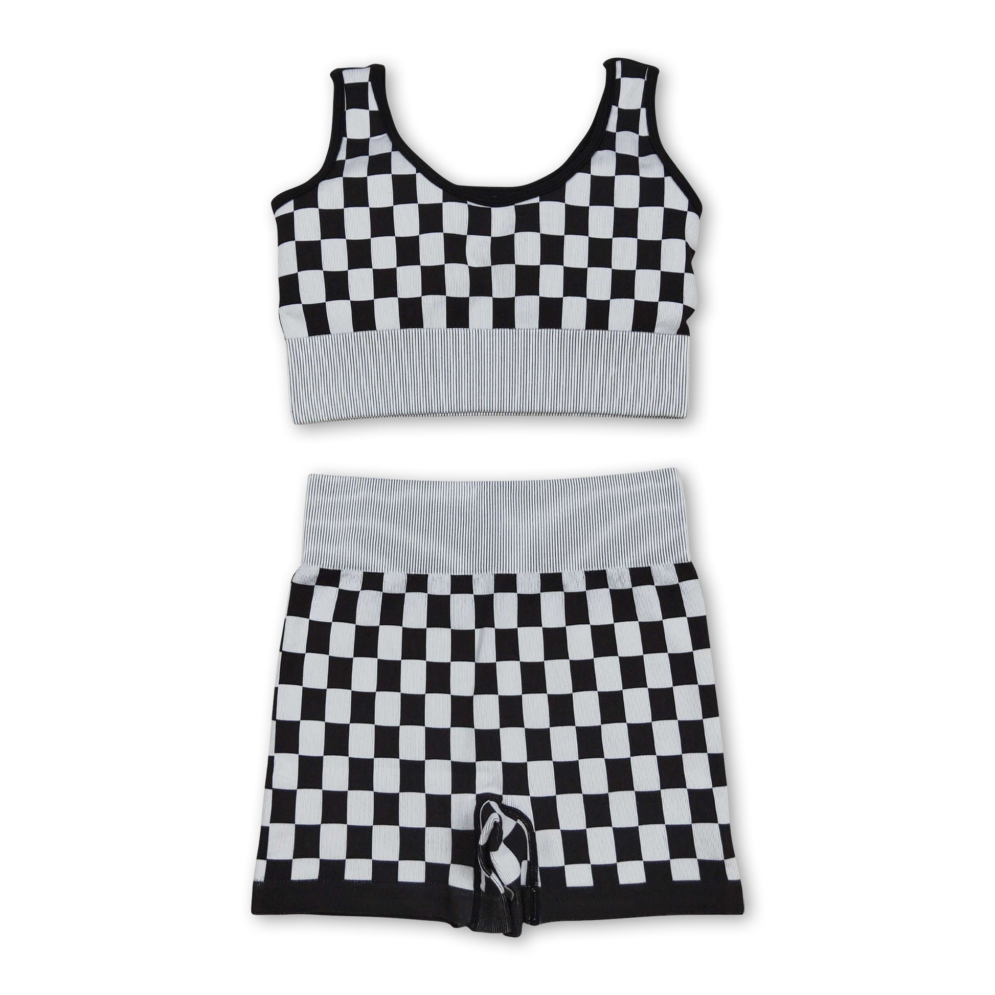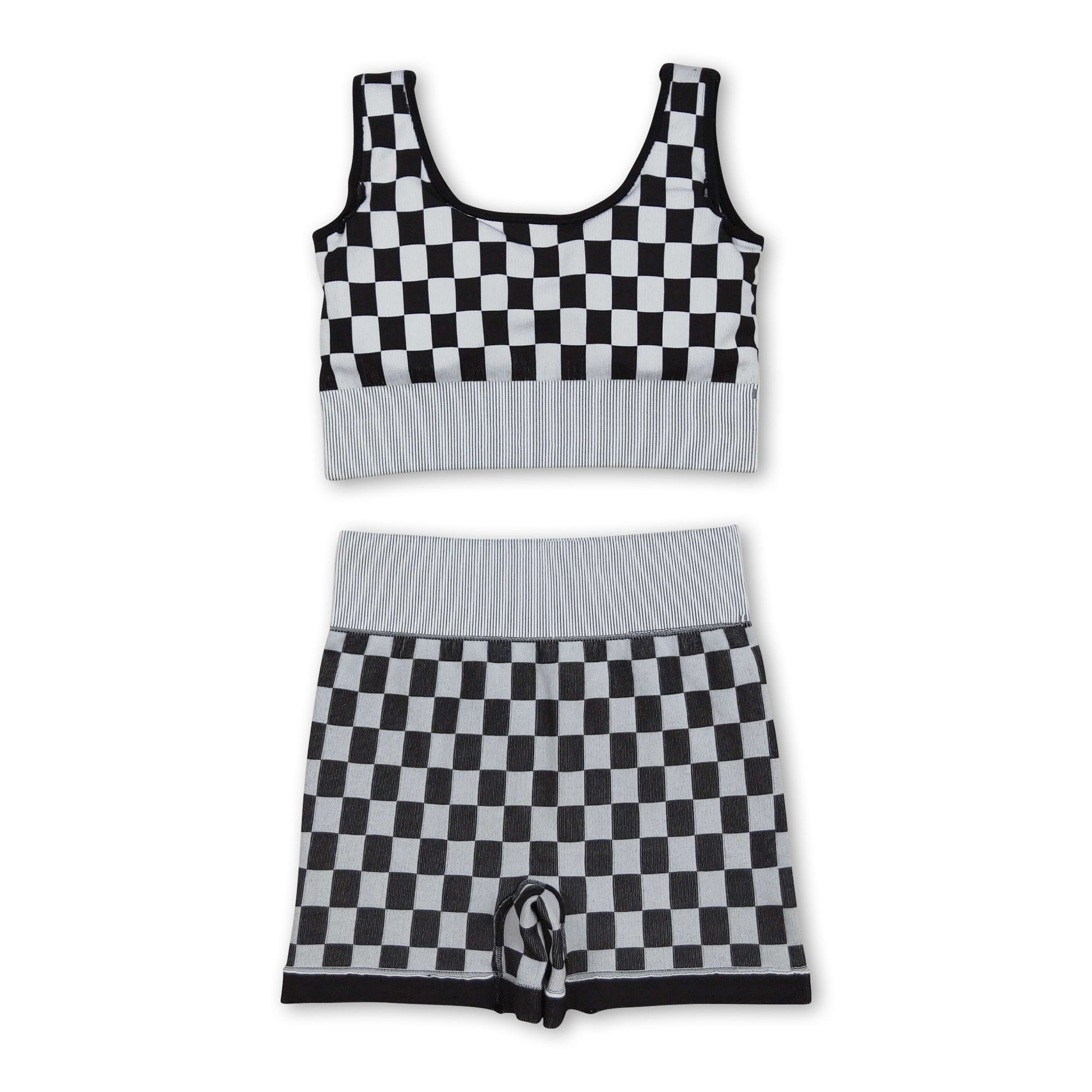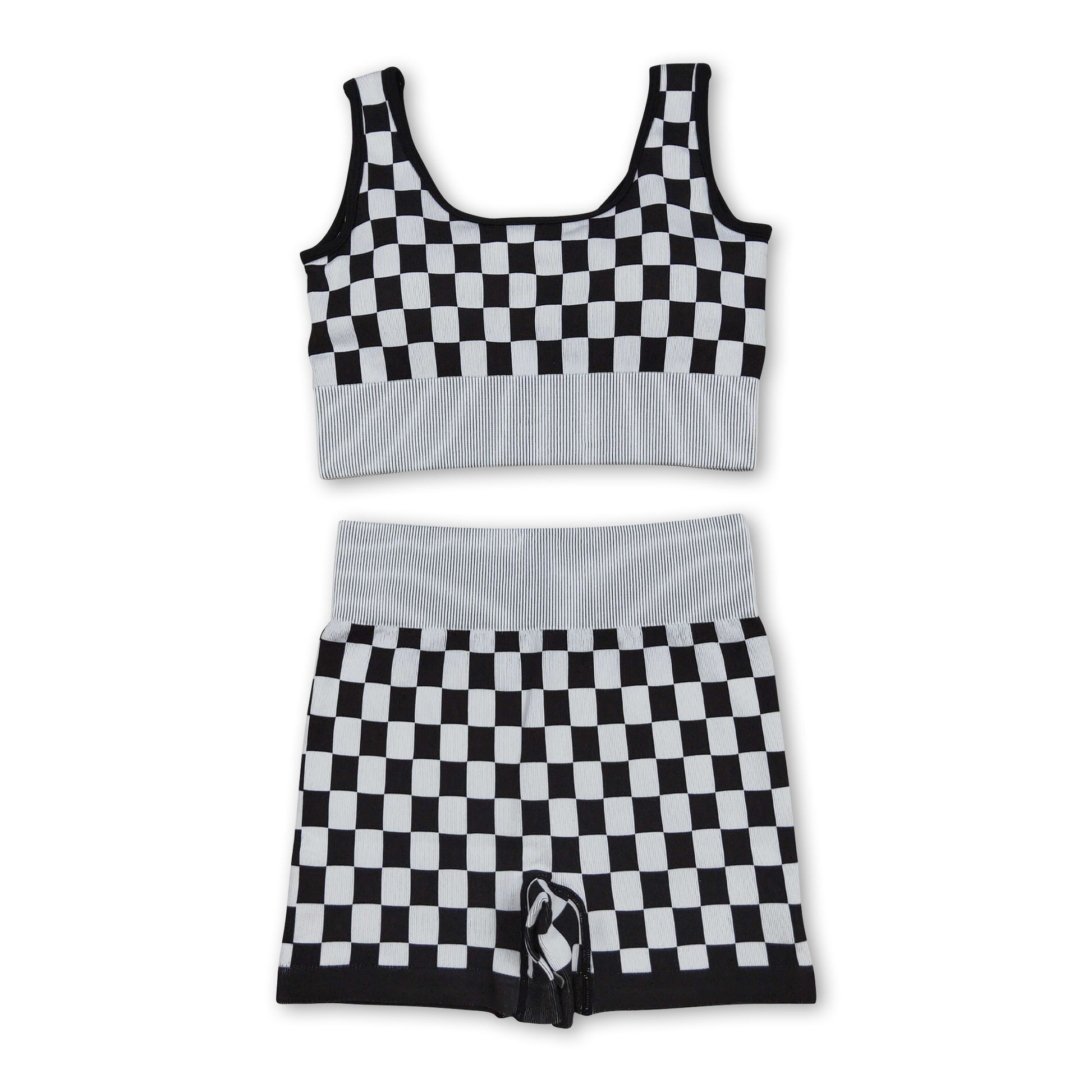 Sleeveless black plaid thick fabric adult women activewear