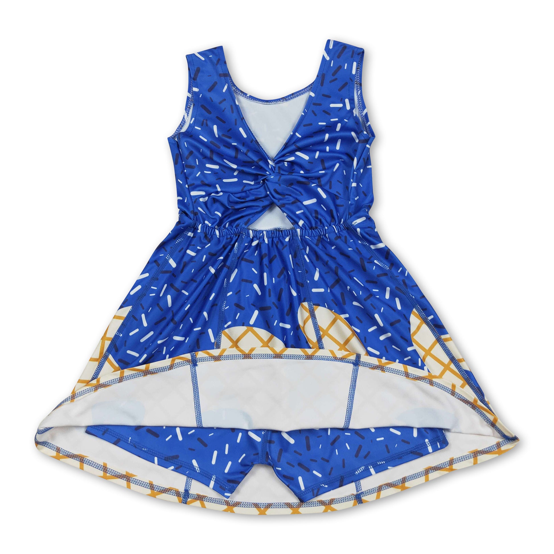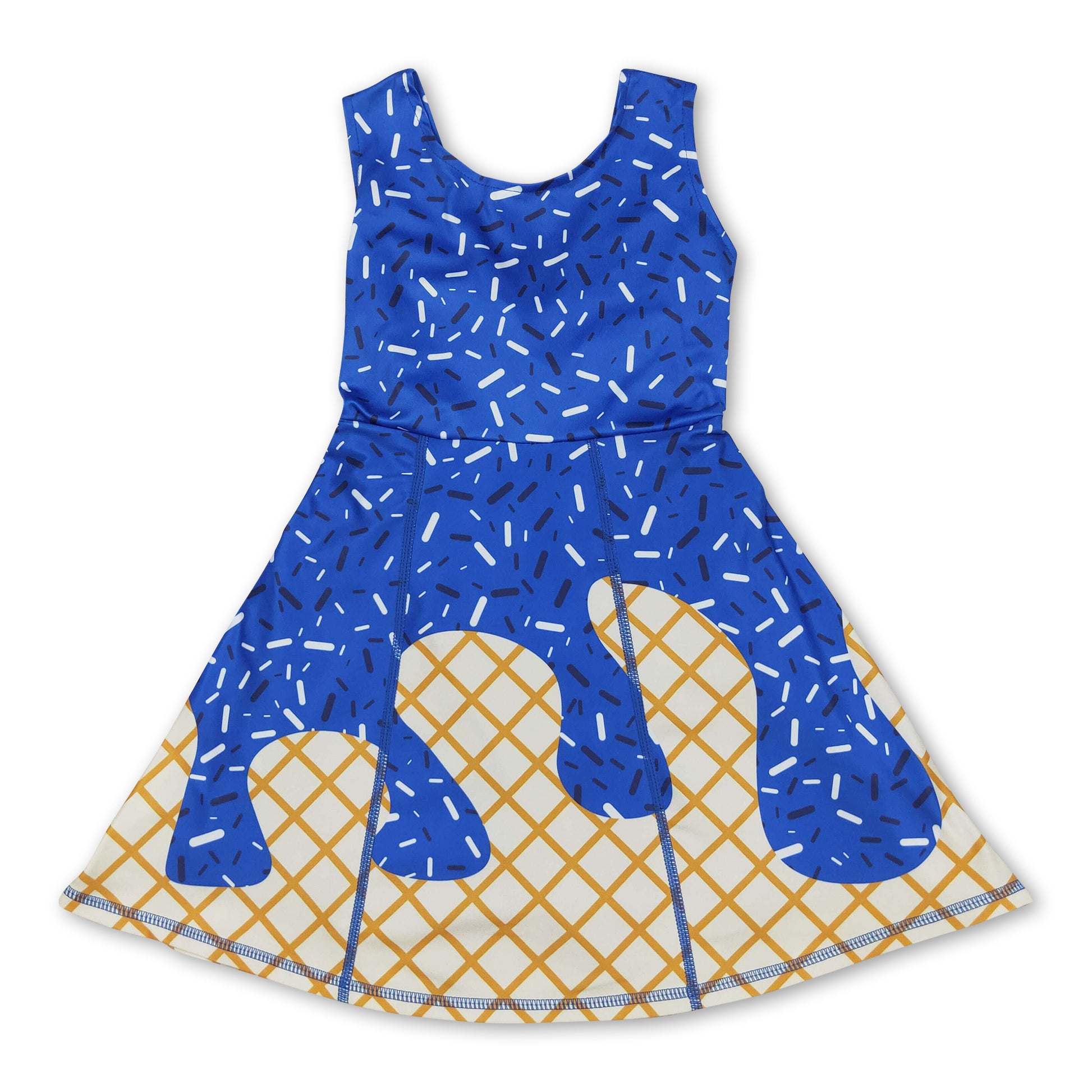 Sleeveless blue ice cream sprinkle girls athletic dress