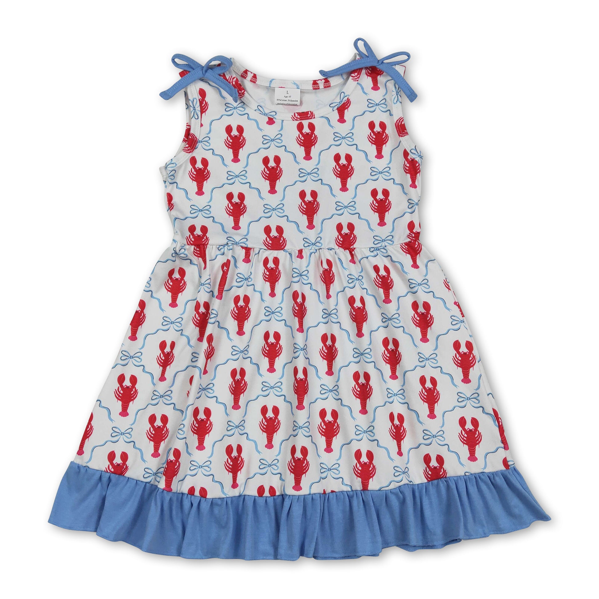 Sleeveless blue ruffle bow crawfish kids girls dresses