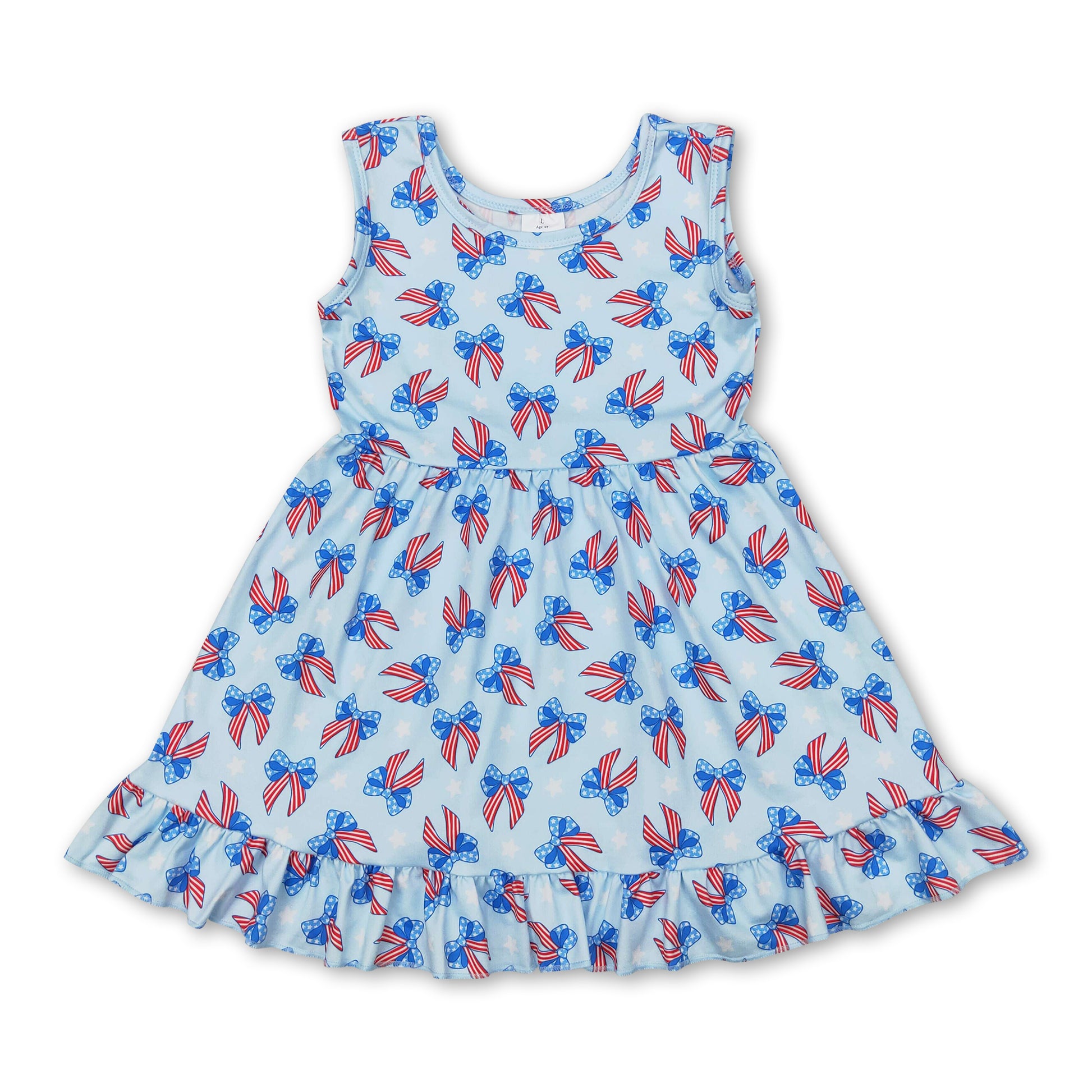 Sleeveless blue stars stripe bows baby girls 4th of july dress