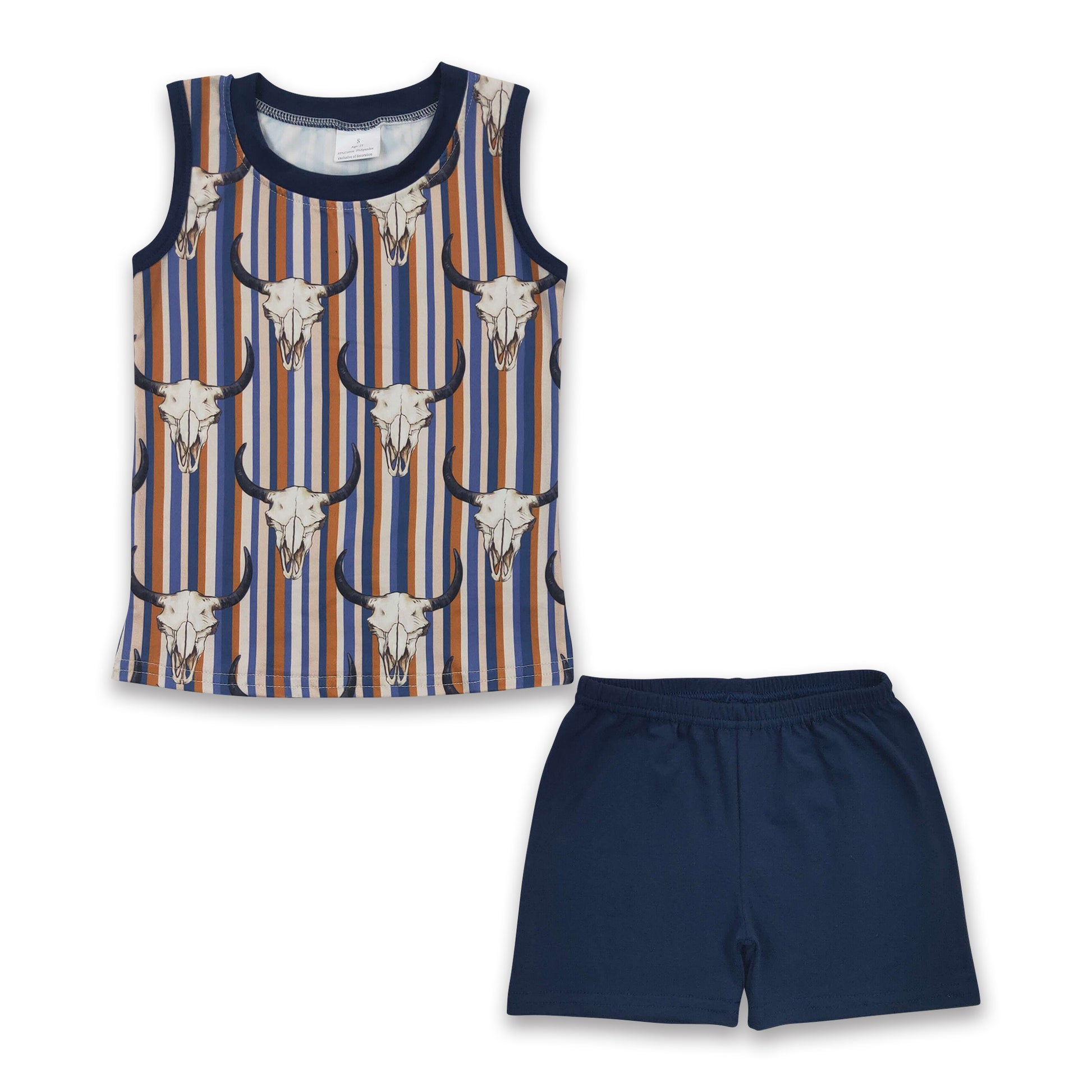 Sleeveless bull skull stripe shirt shorts kids boy clothing set