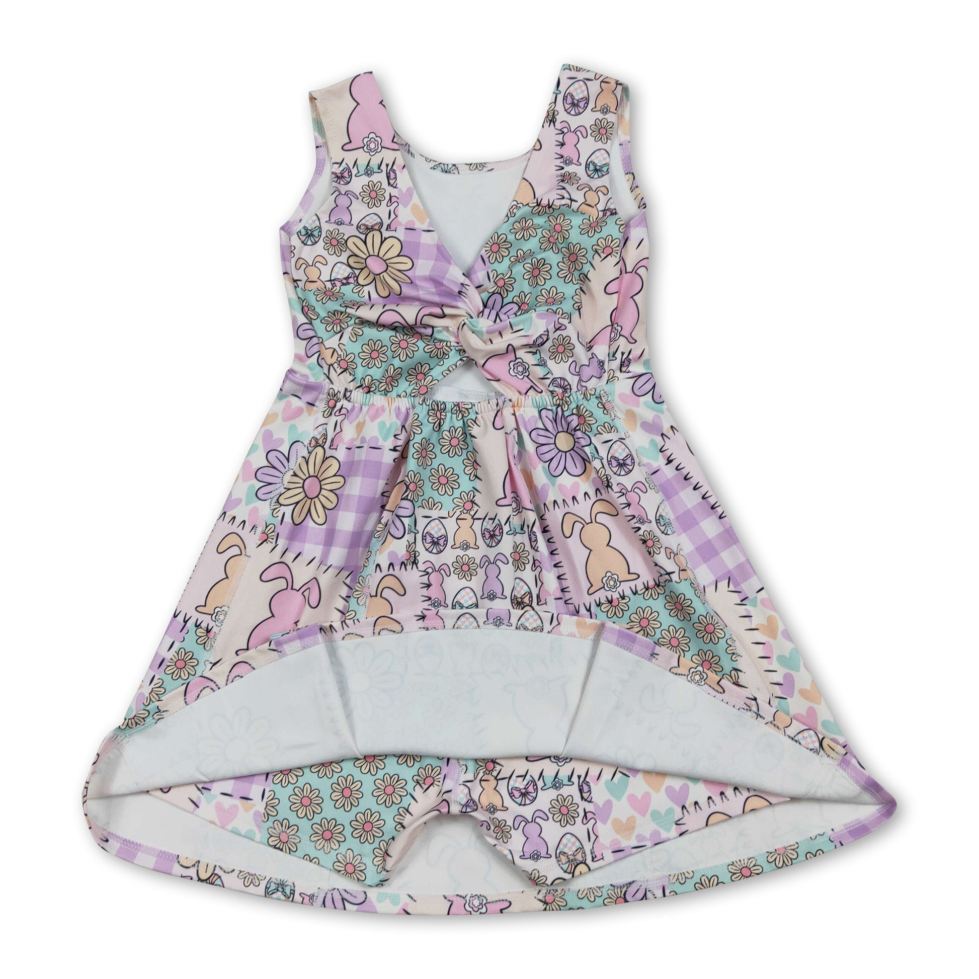 Sleeveless bunny floral kids girls Easter athletic dresses