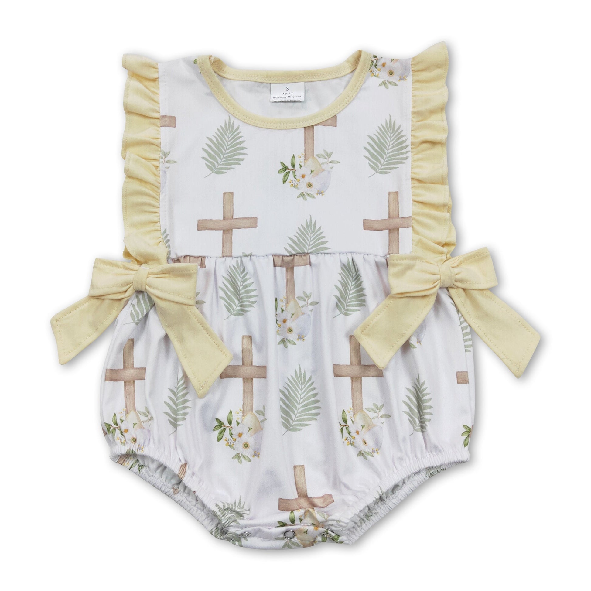 Sleeveless cross he is risen baby girls easter romper