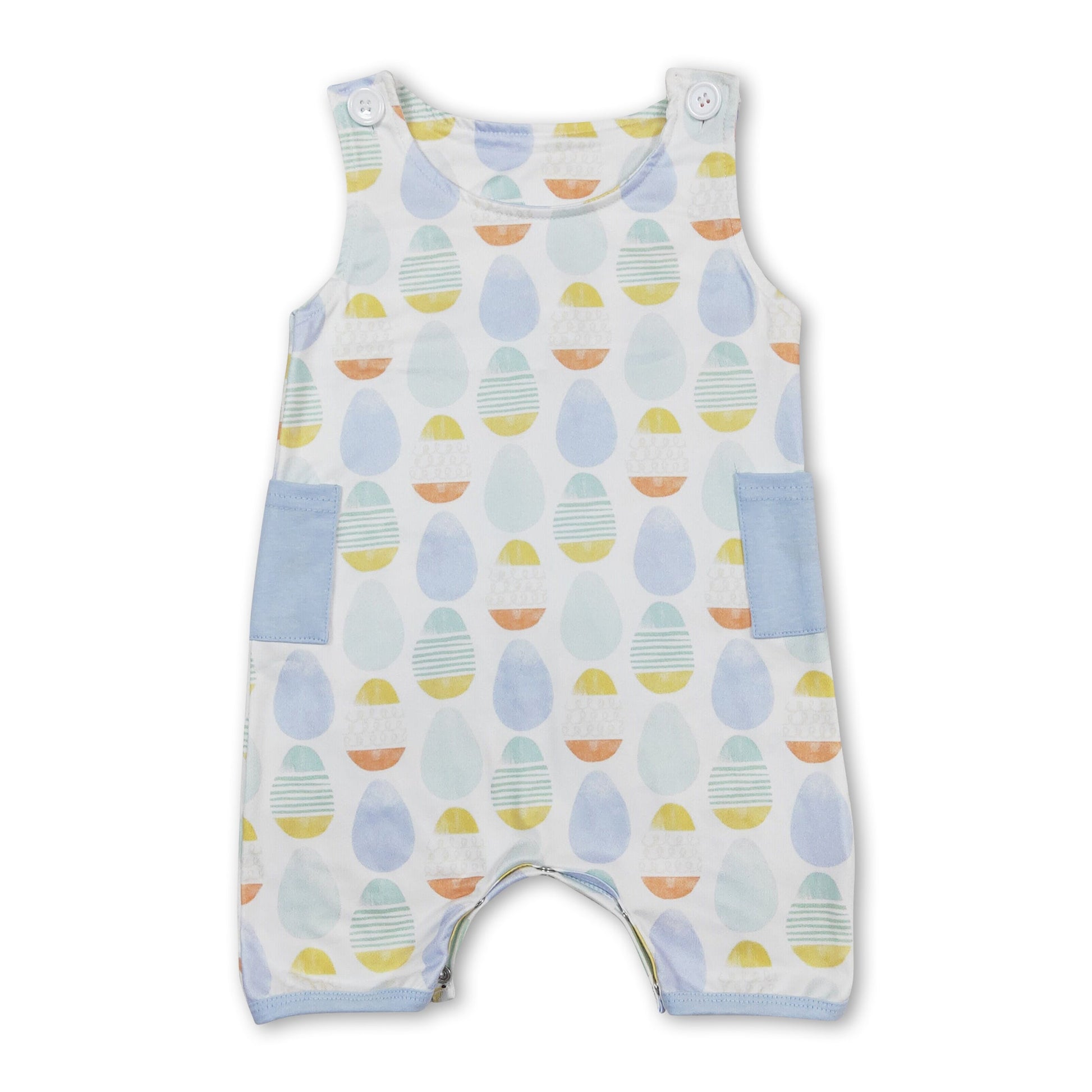 Sleeveless eggs pocket baby boy easter romper