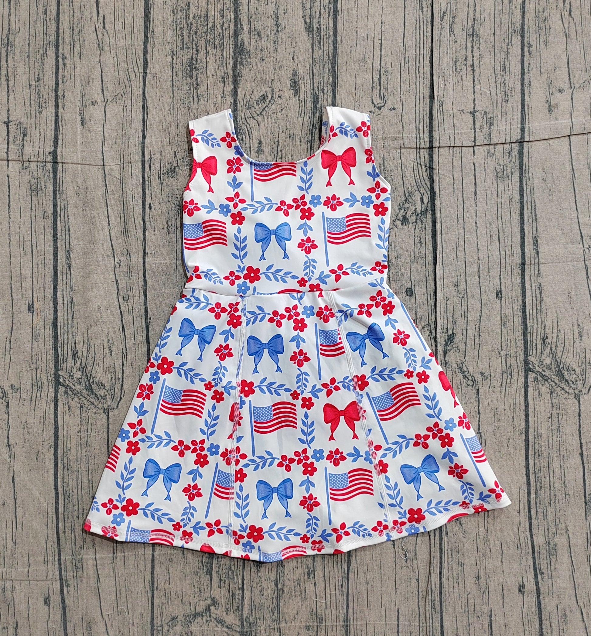 Sleeveless floral flag bow girls 4th of july athletic dresses