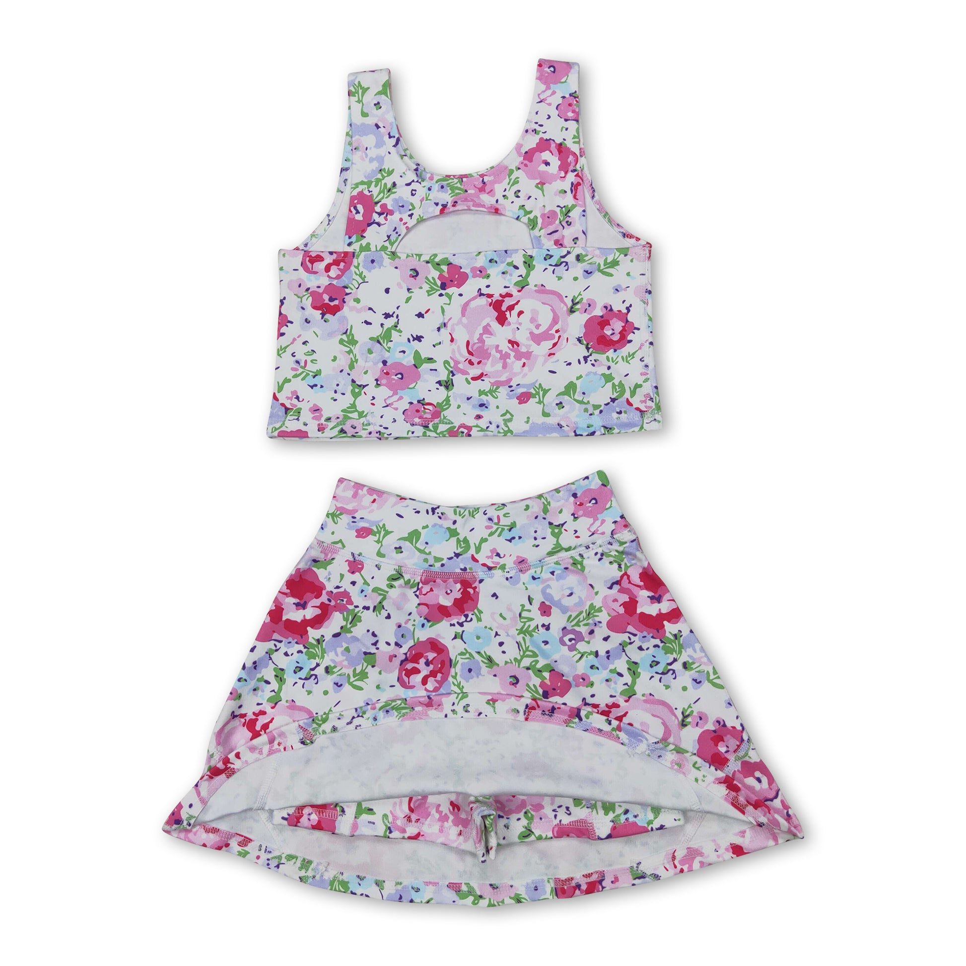Sleeveless floral top skirt girls activewear clothing set