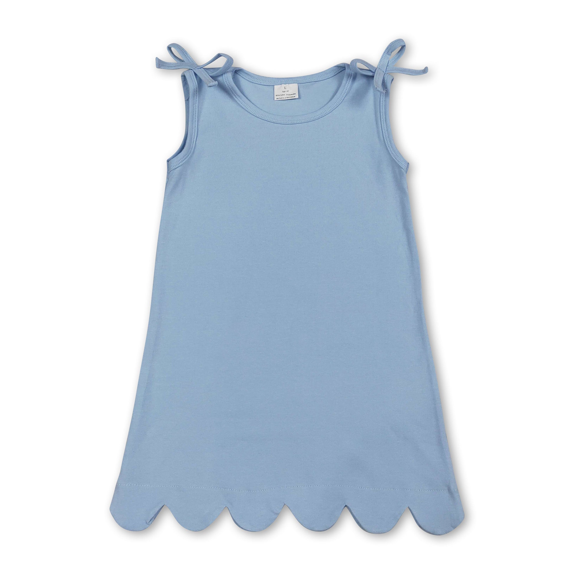 Sleeveless light blue cotton scallop girls summer dress