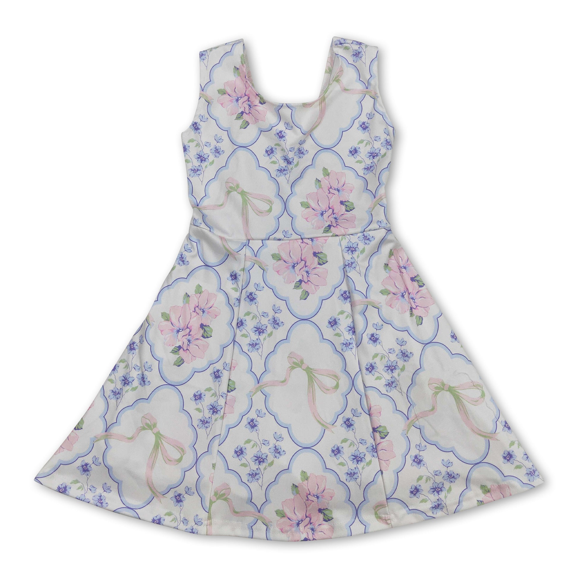 Sleeveless light blue pink floral bow baby girls athletic dresses