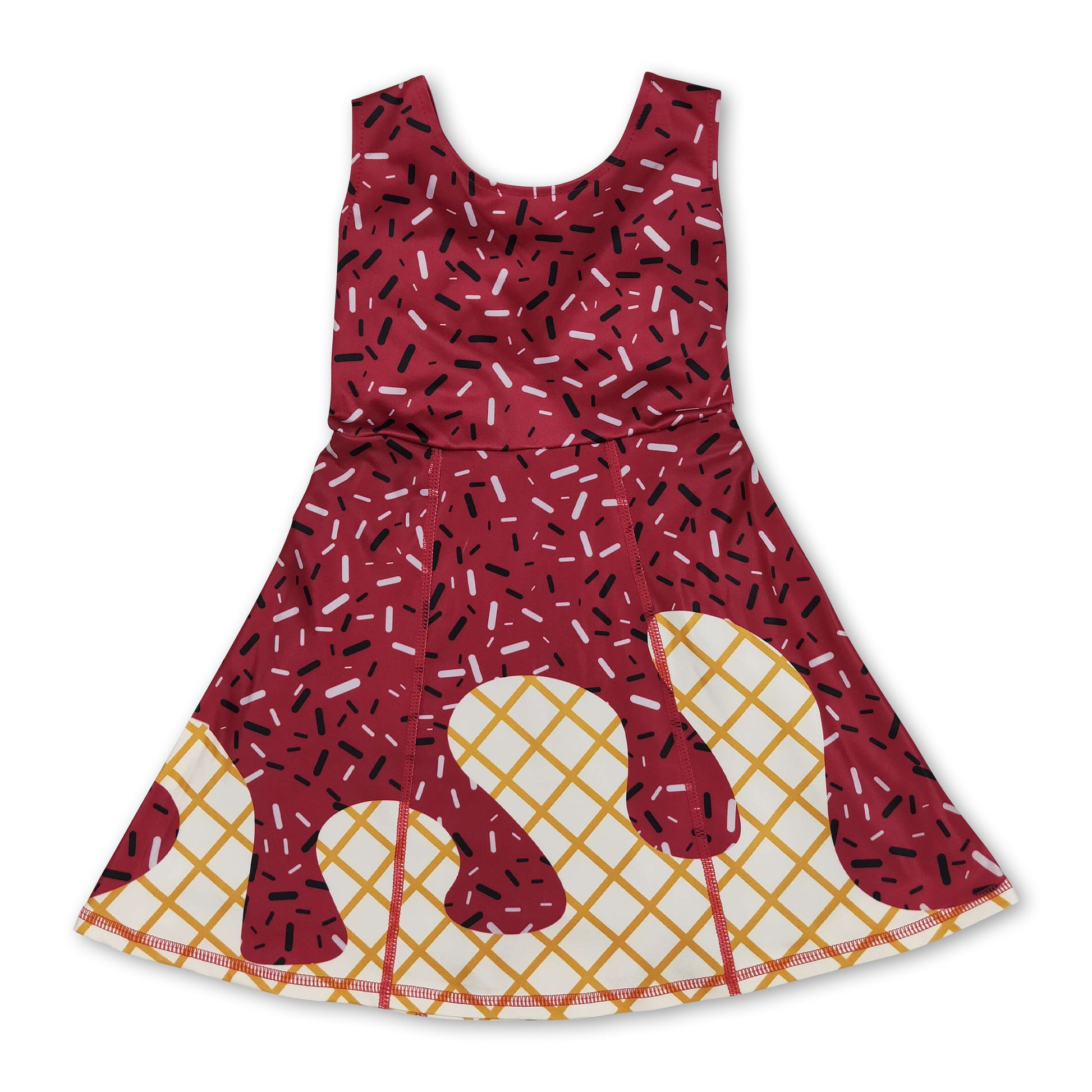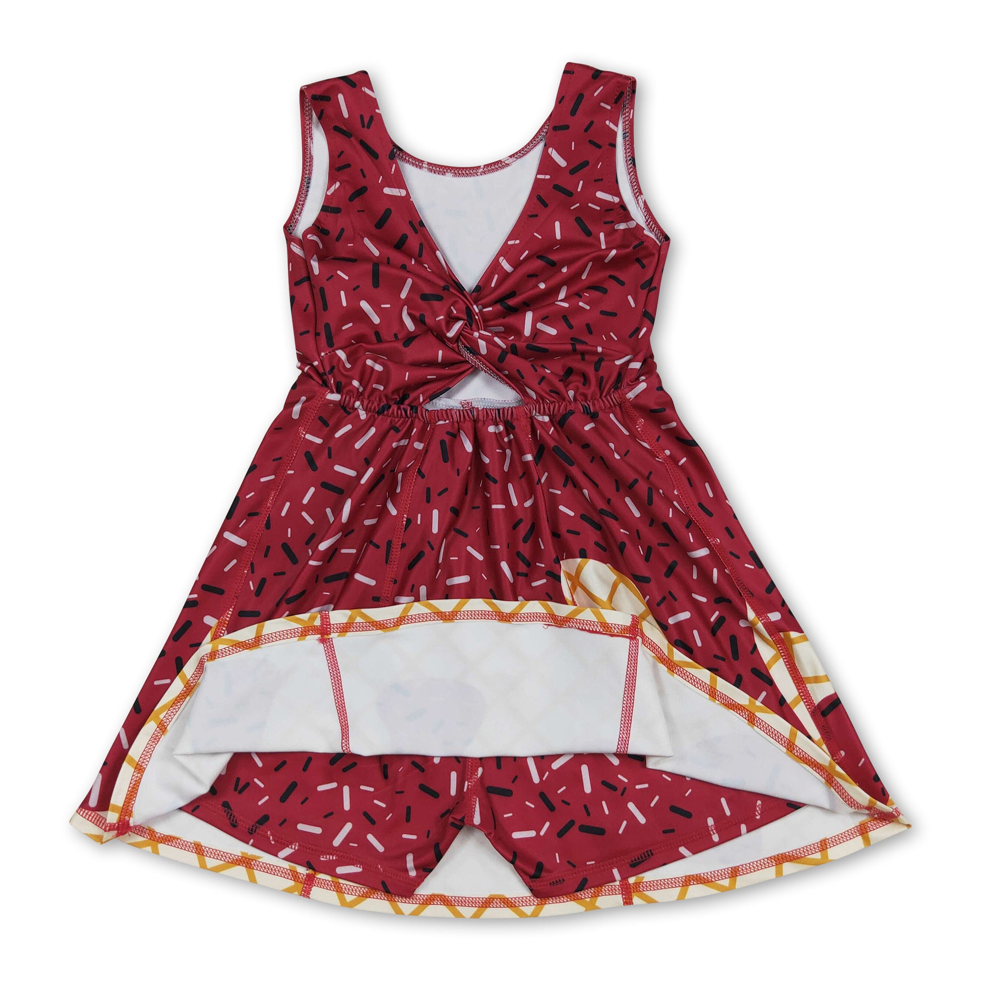 Sleeveless maroon ice cream sprinkle girls athletic dress