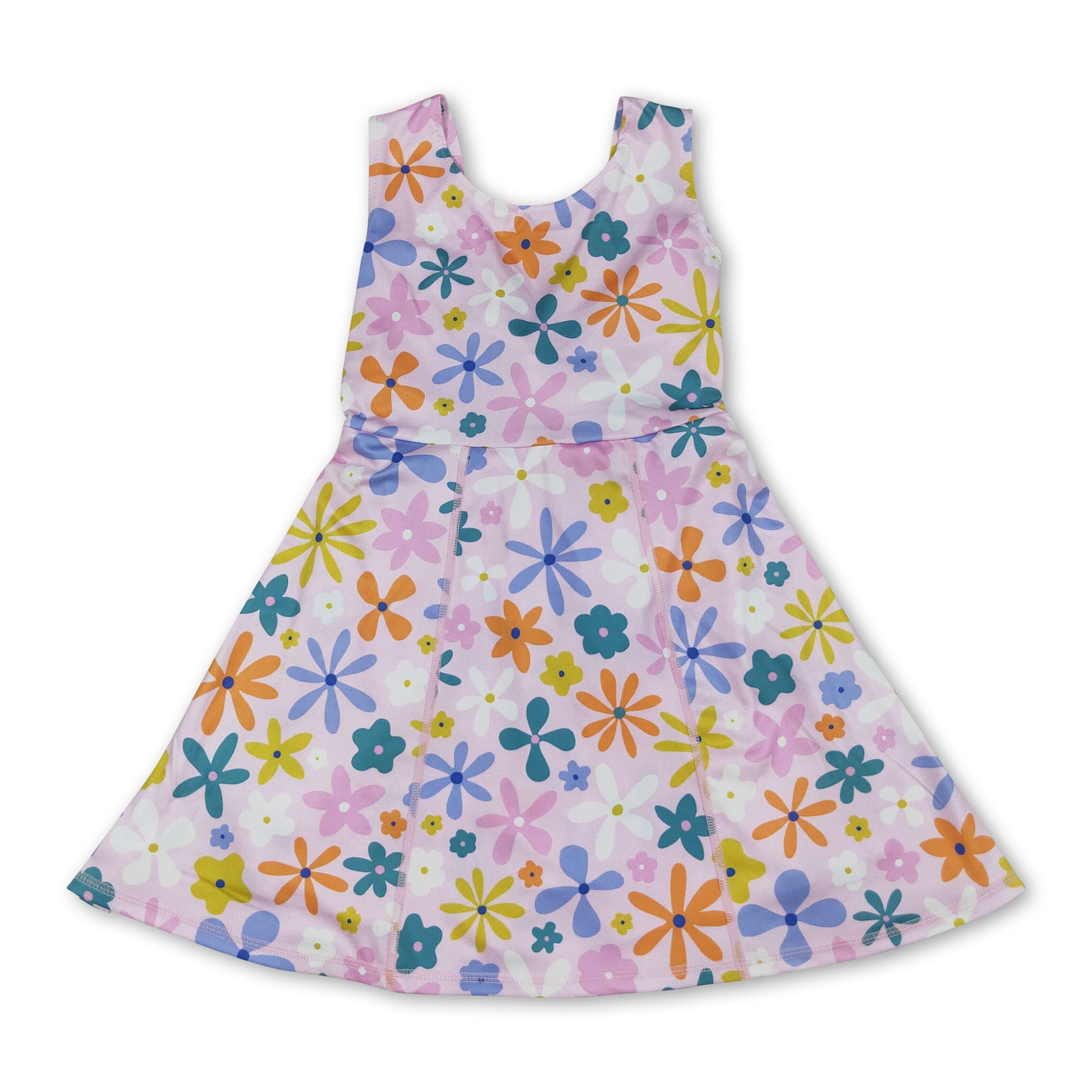 Sleeveless multi color floral kids girls athletic dresses