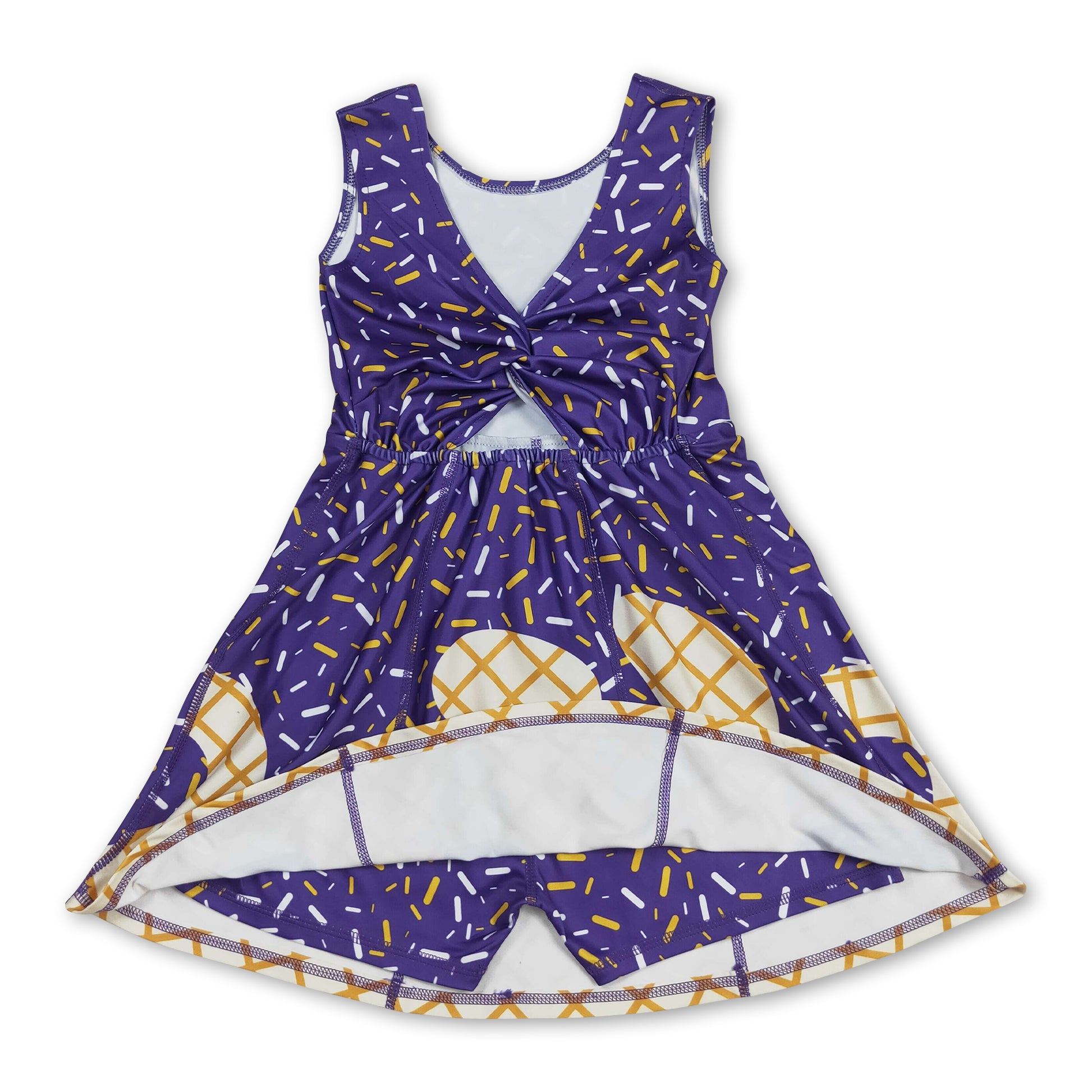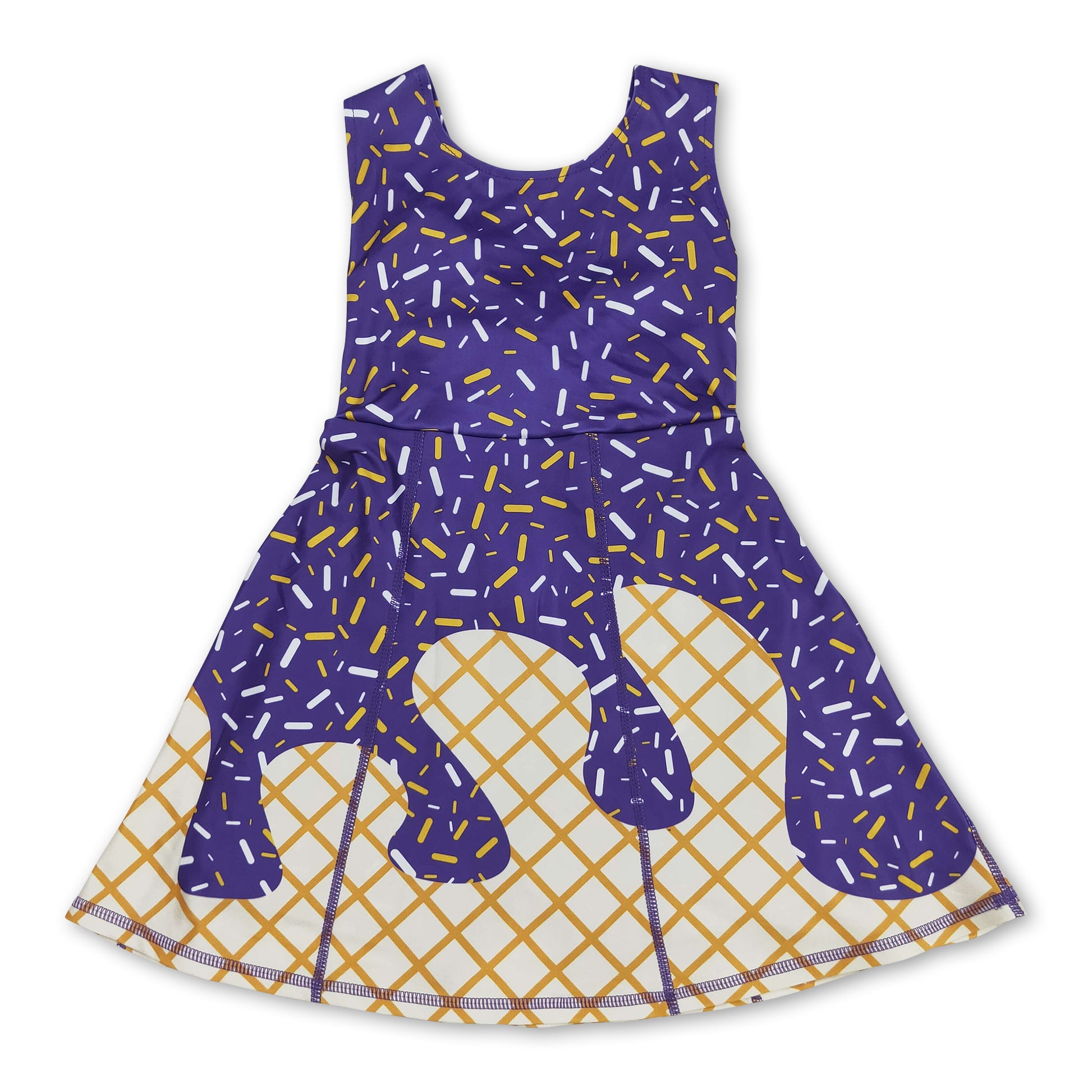 Sleeveless purple ice cream sprinkle girls athletic dress
