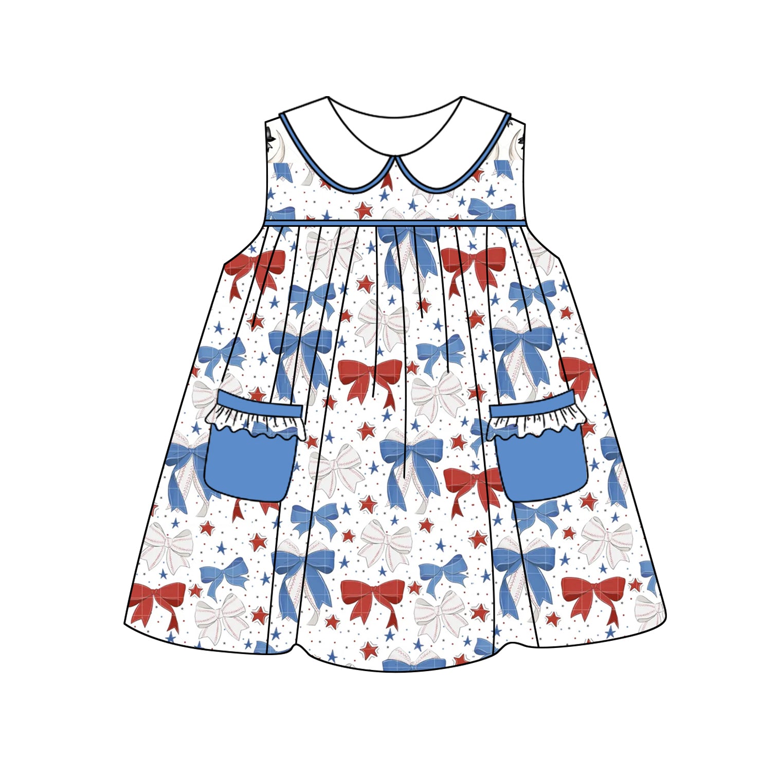 Sleeveless red blue bow pockets girls 4th of july dresses