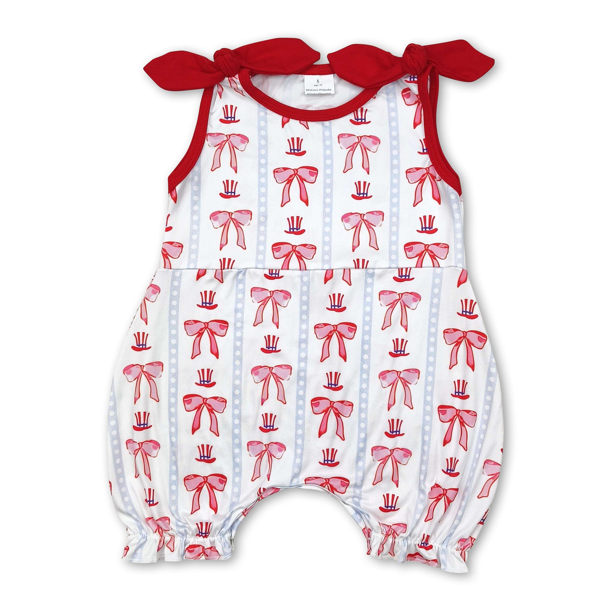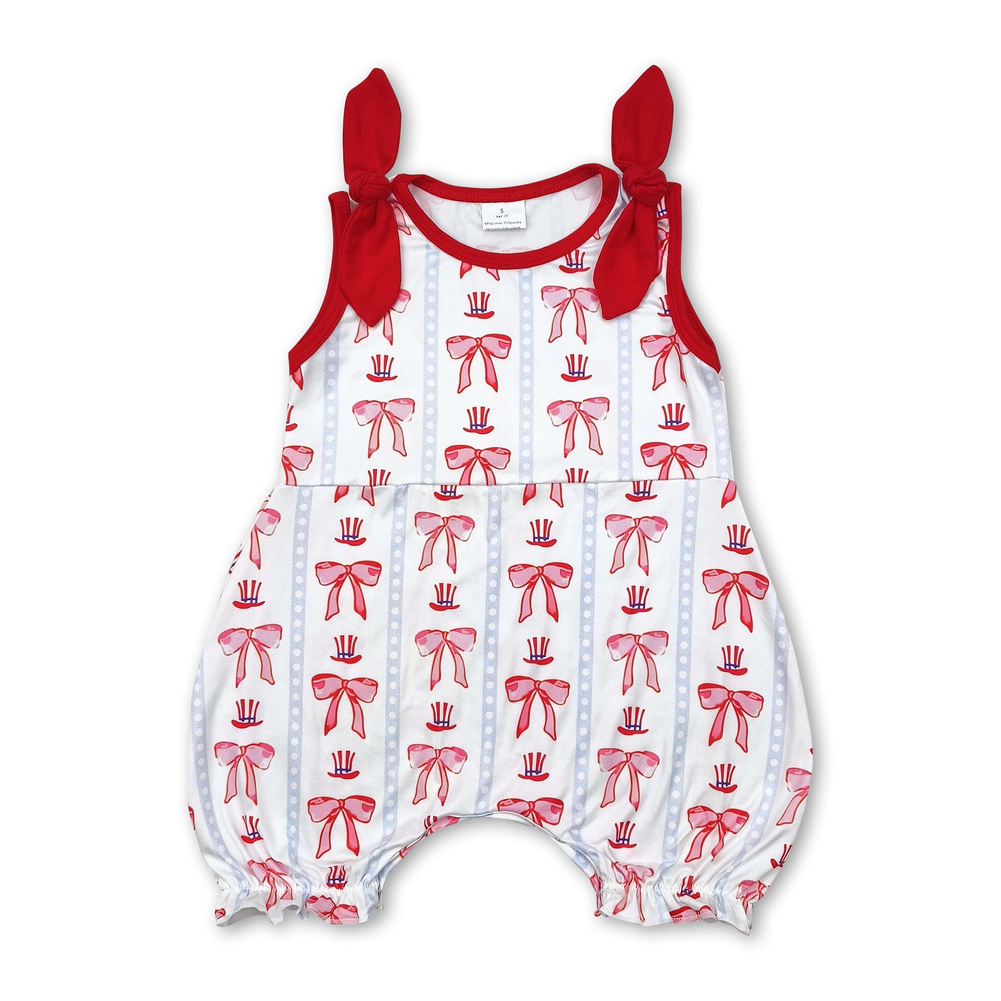 Sleeveless red bow baby girls 4th of july romper