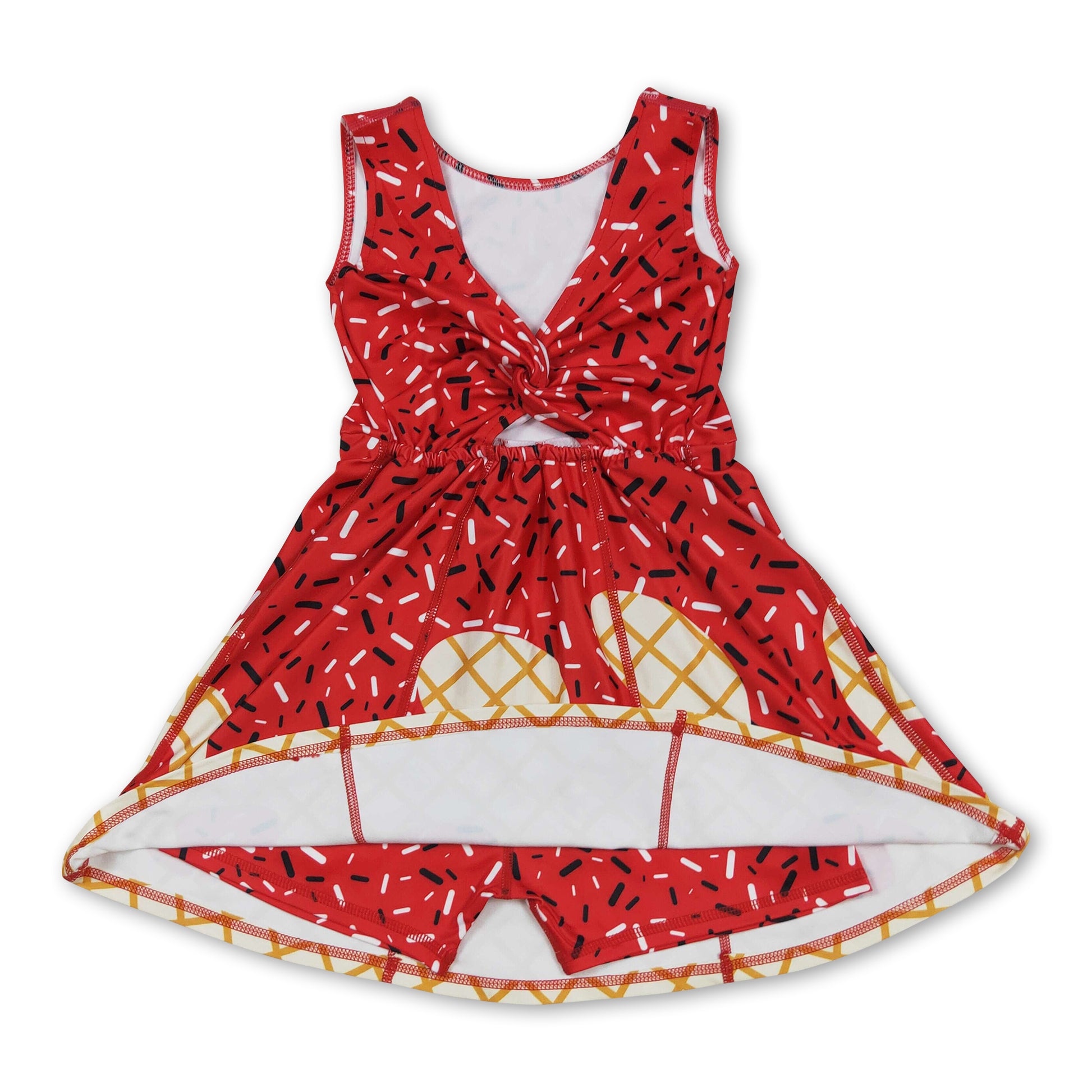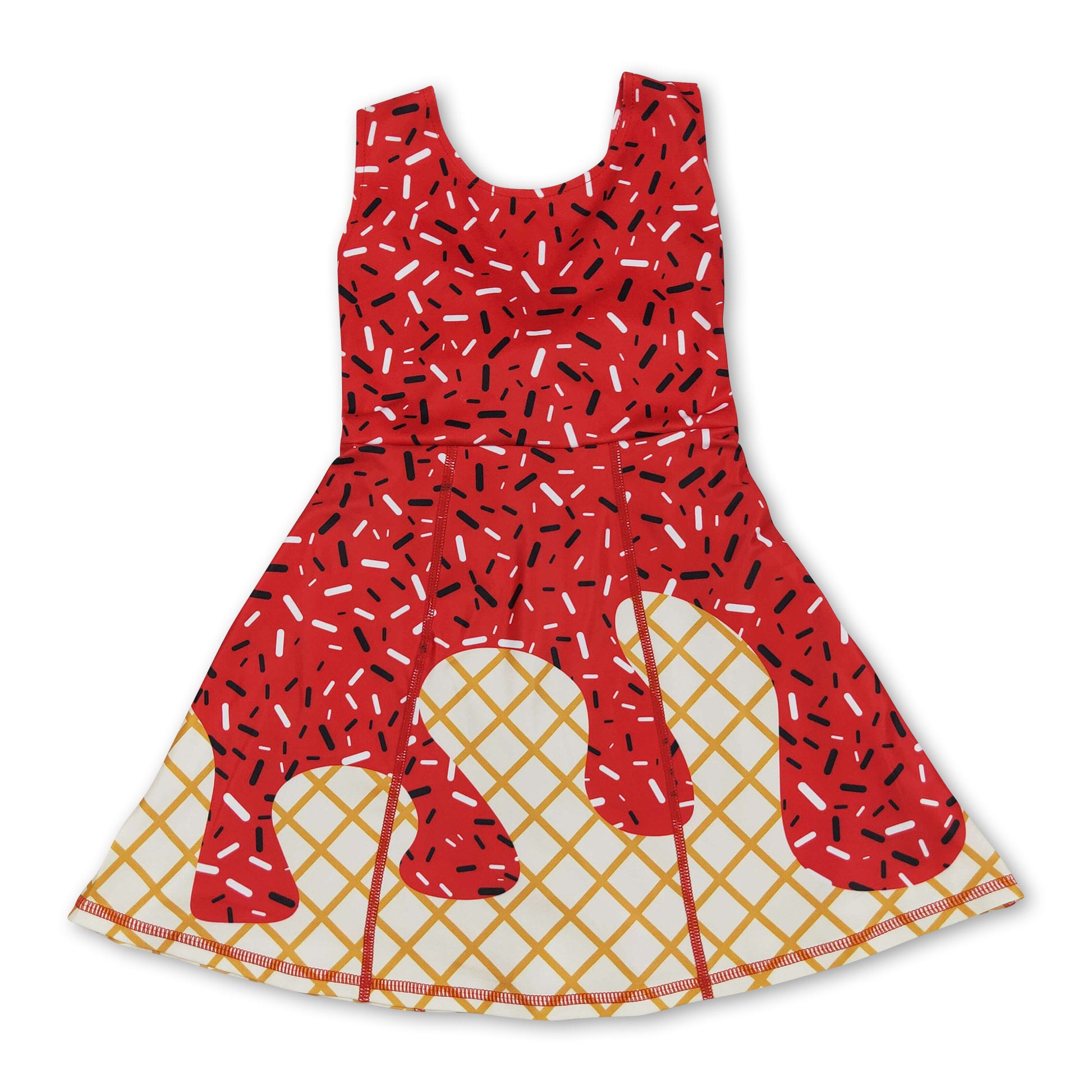 Sleeveless red ice cream sprinkle girls athletic dress