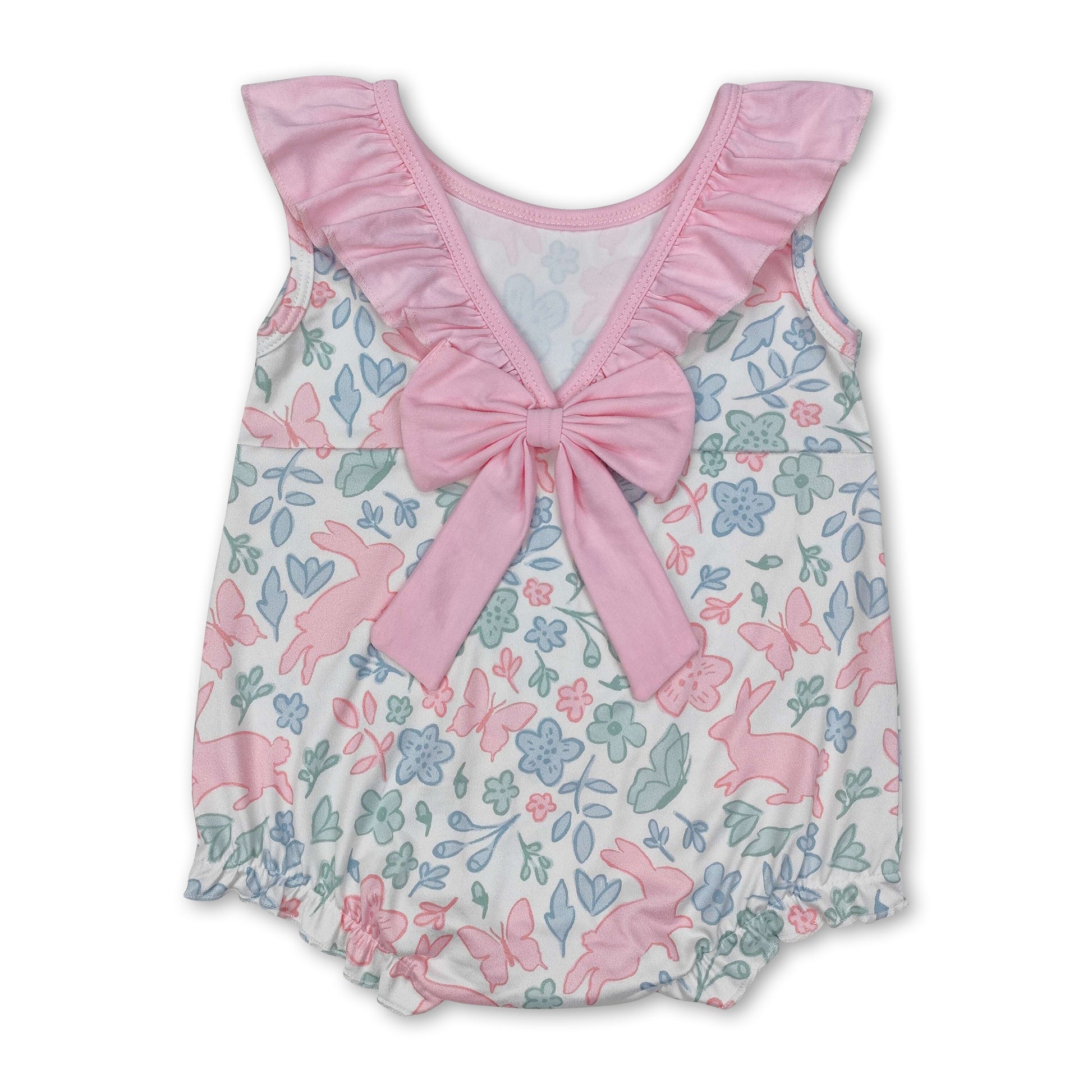 Sleeveless ruffle floral bunny baby girls Easter romper