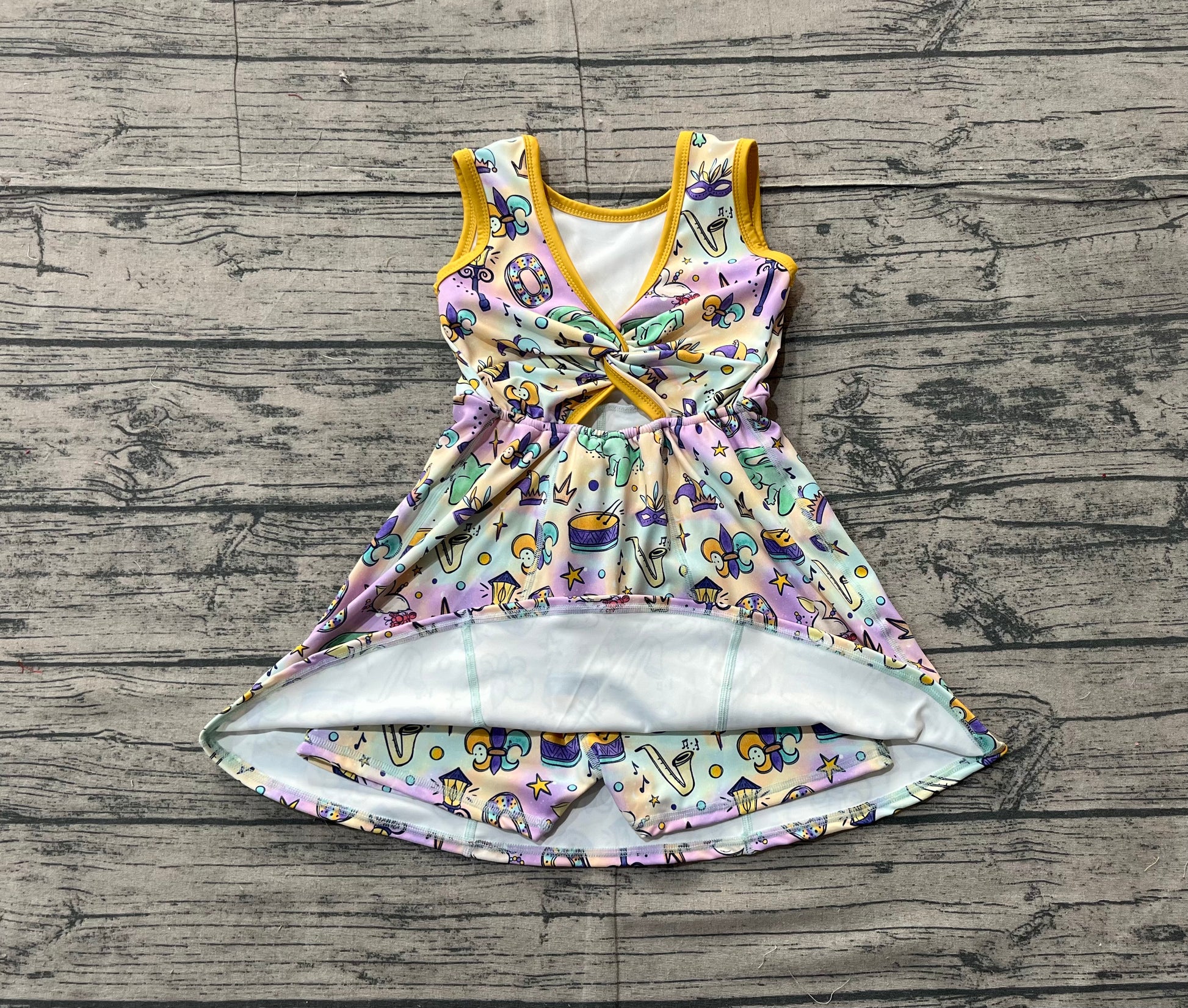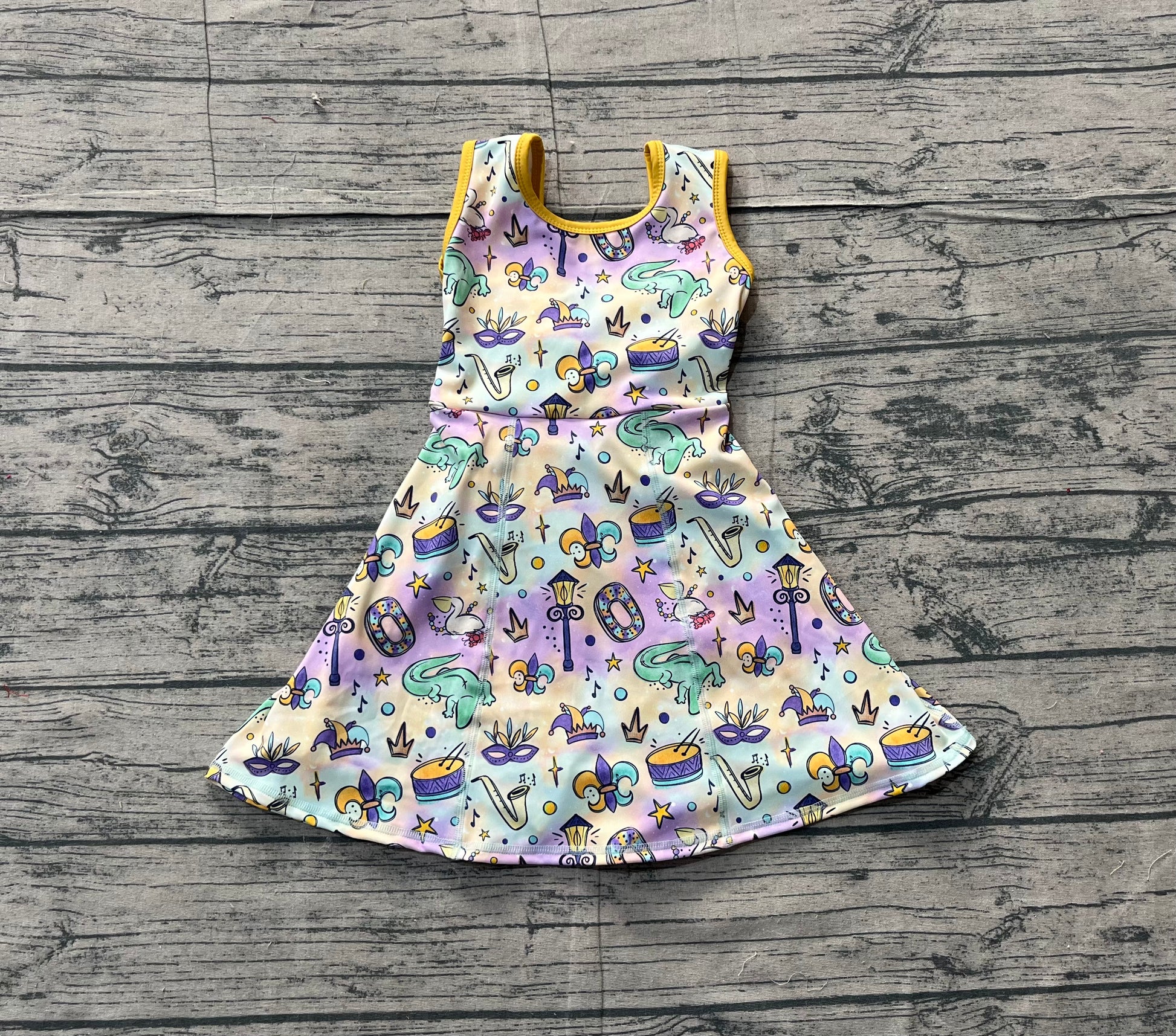 Sleeveless tie dye kids girls Mardi Gras athletic dress