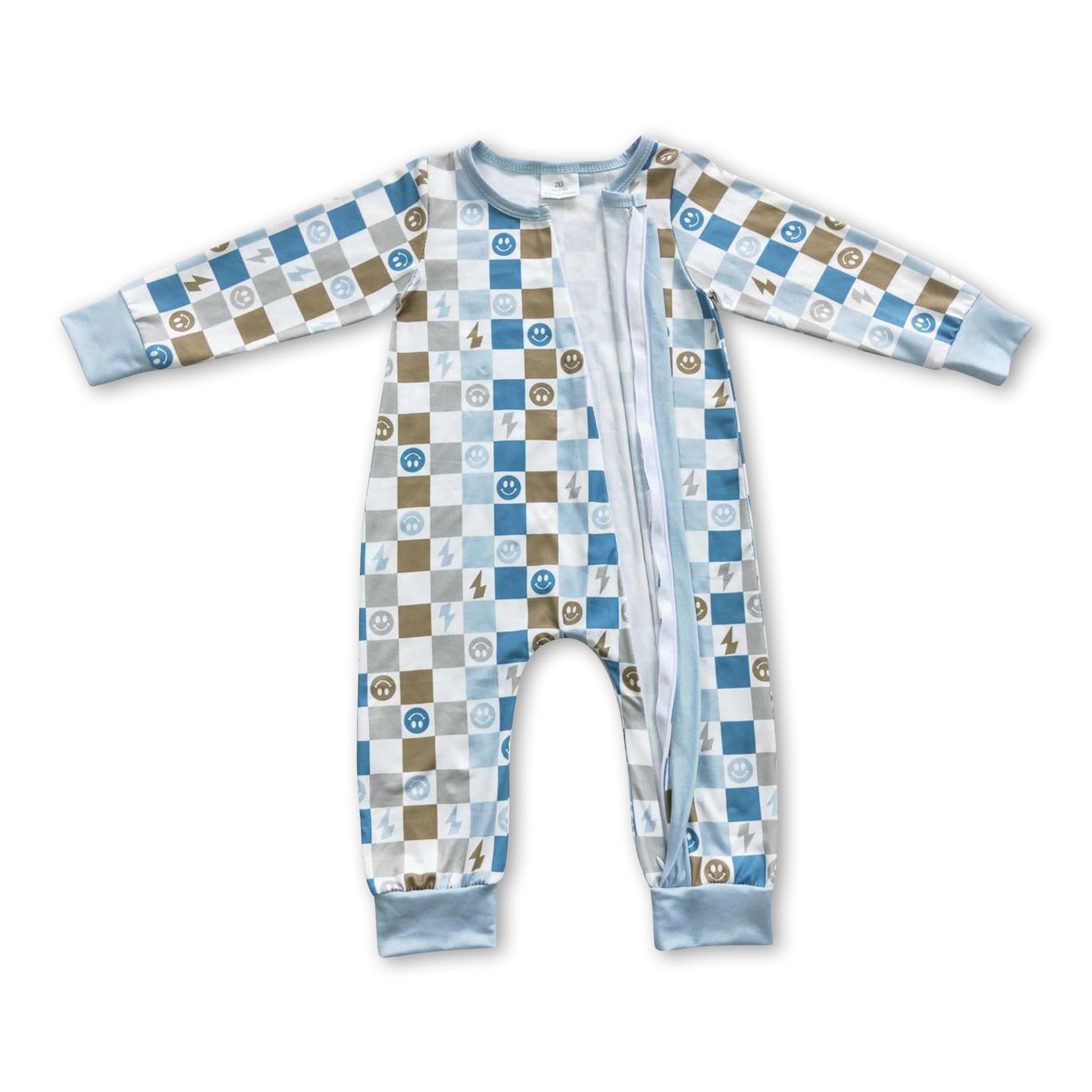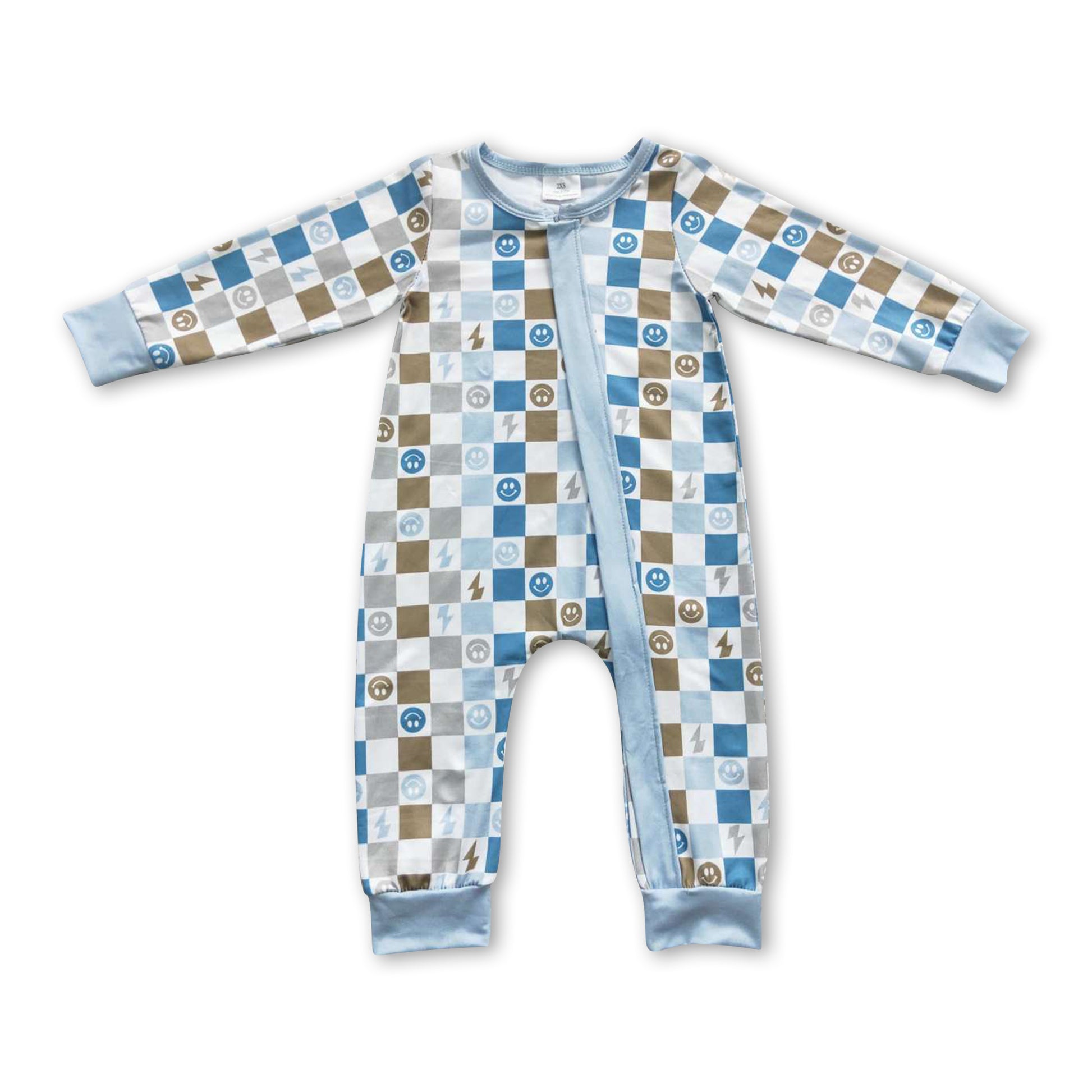 Smile plaid long sleeves baby kids zipper romper