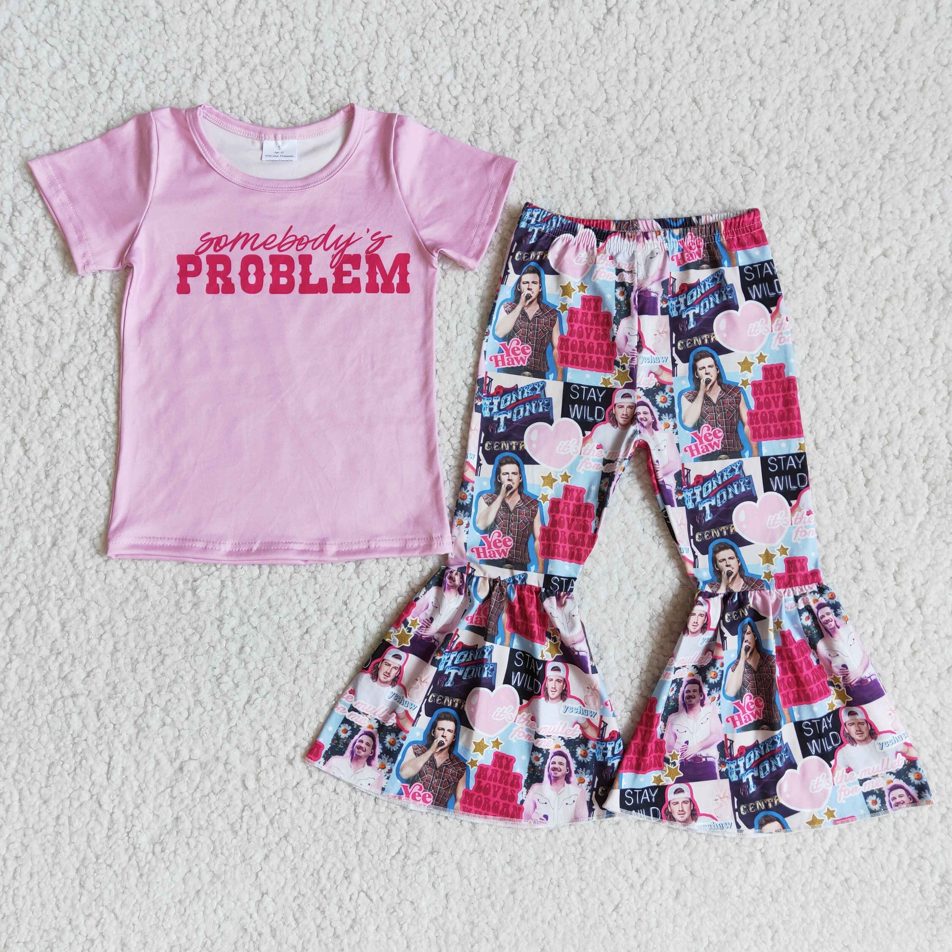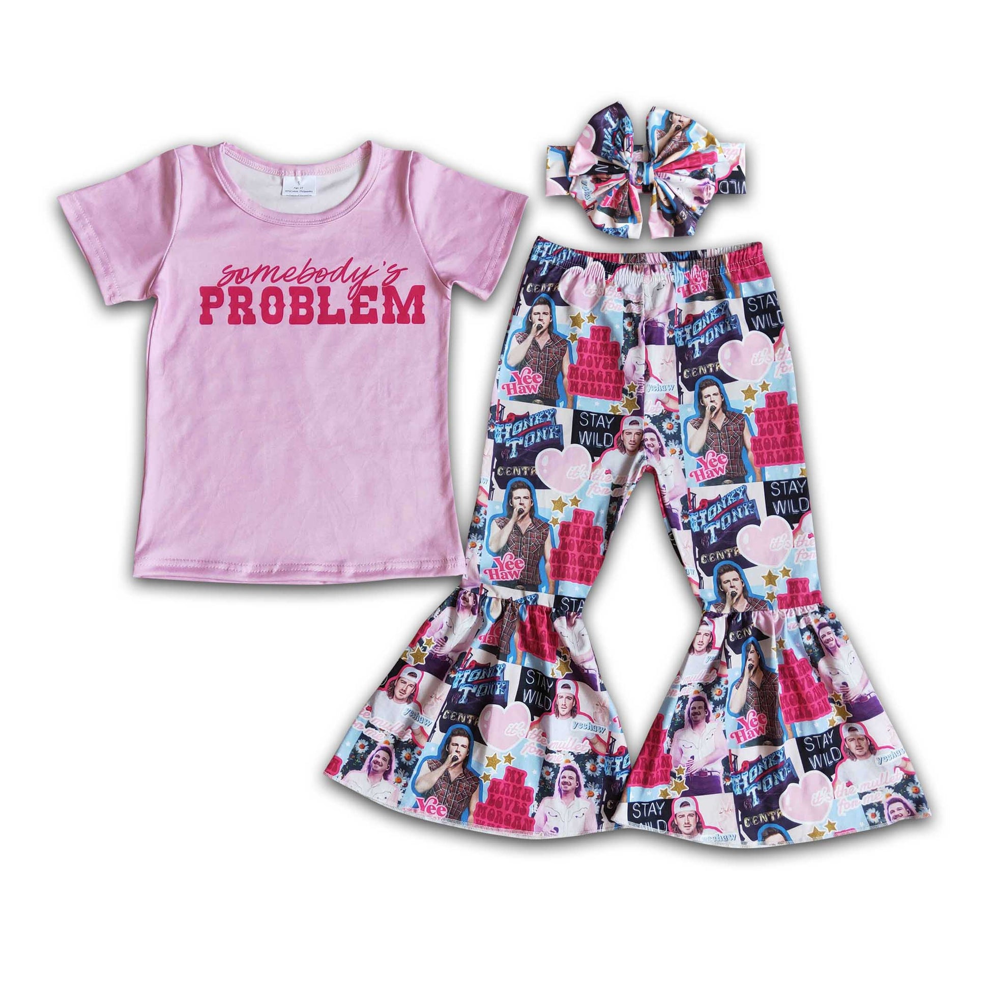 Somebody's problem pink shirt bell bottom pants kids girls singer clothing set