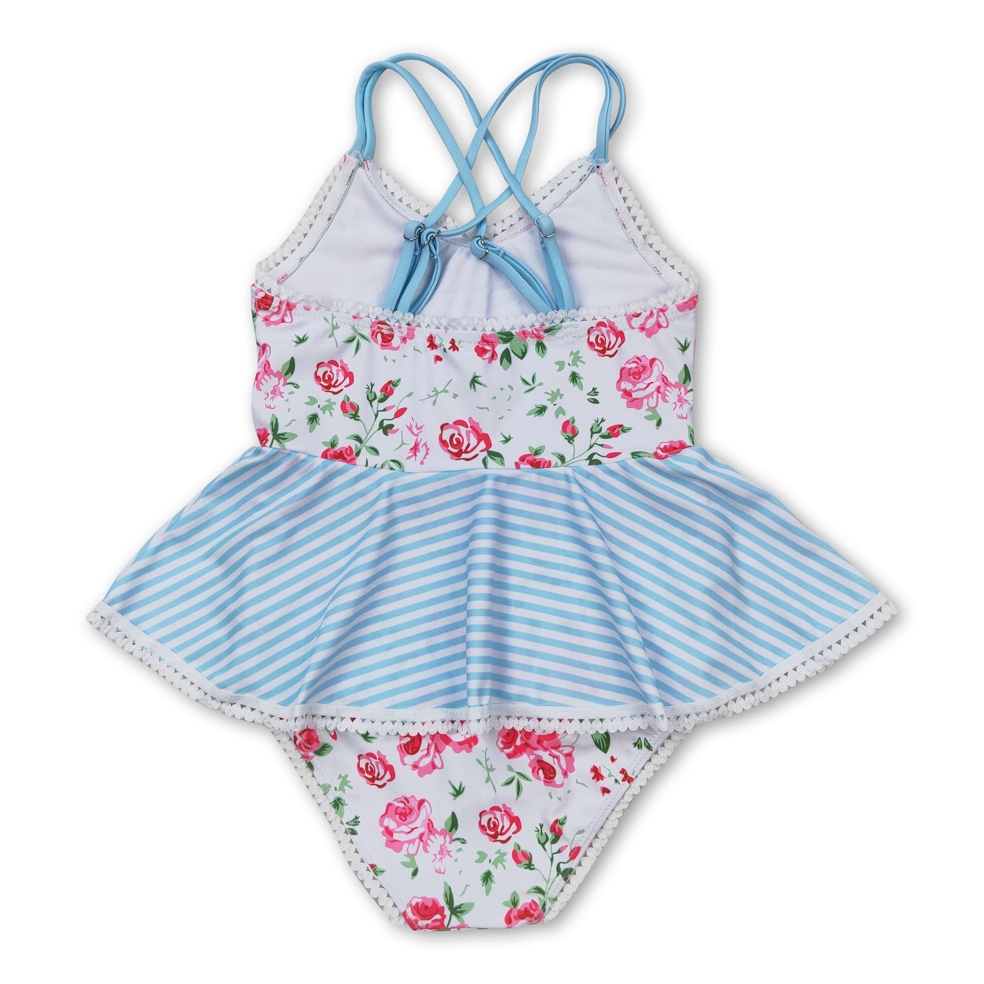 Stripe floral girls one pc summer swimsuit
