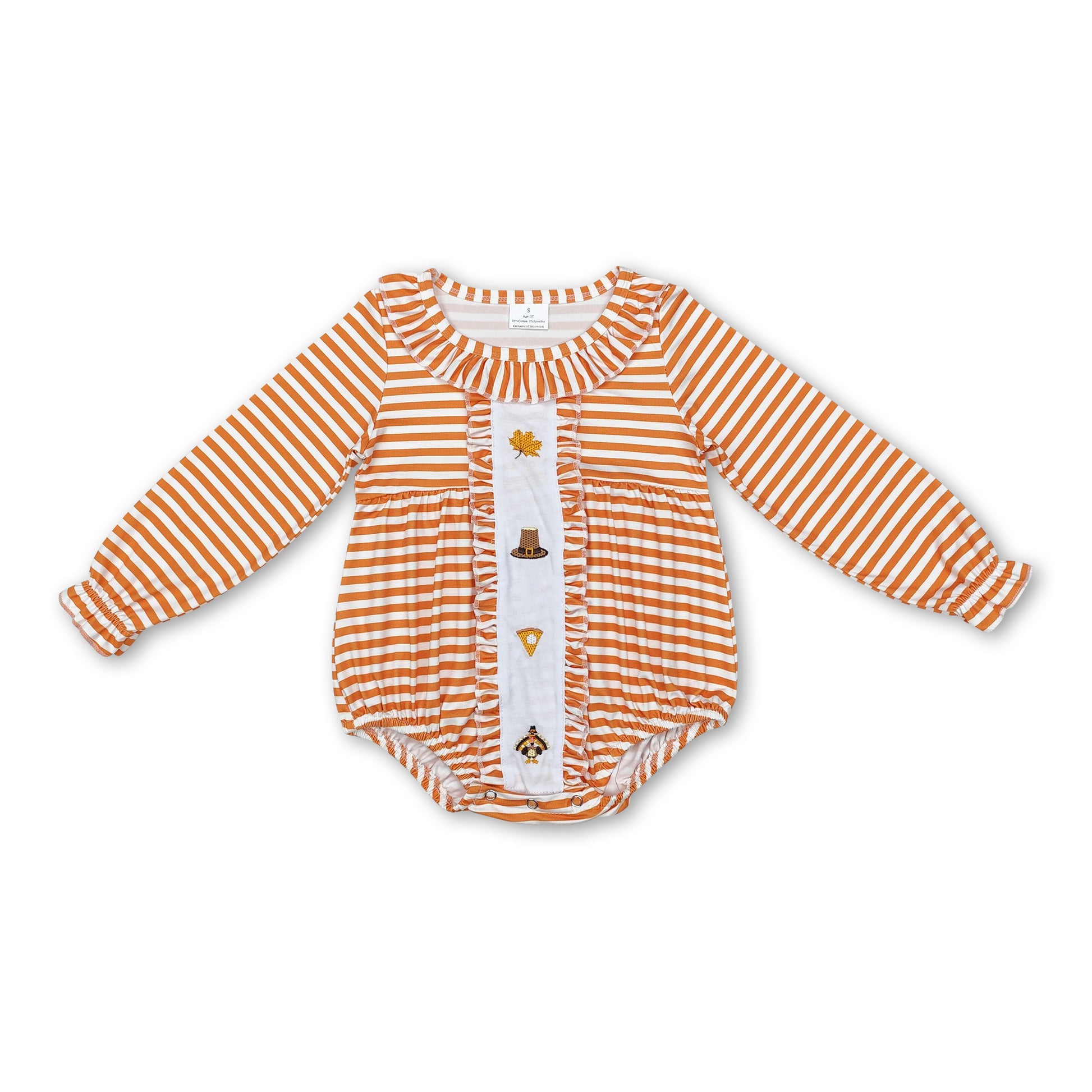 Stripe pumpkin pie turkey baby girls Thanksgiving romper