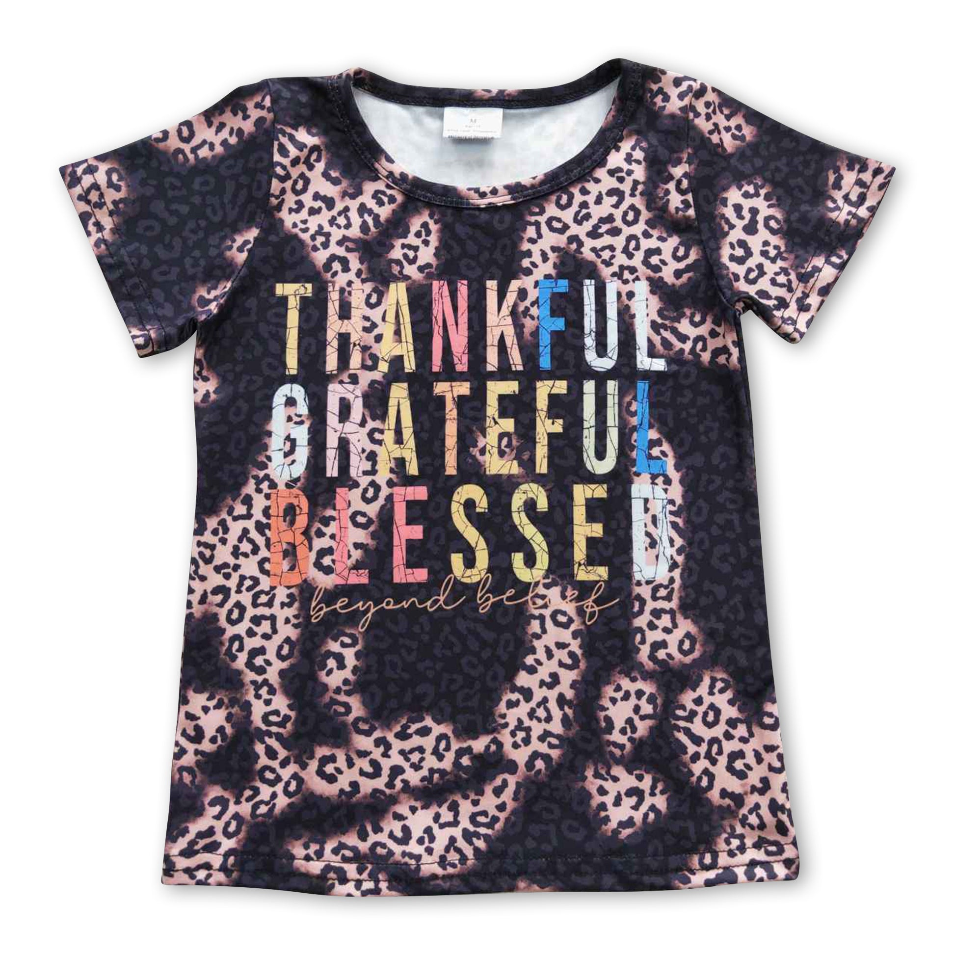 Thankful greatful blessed leopard girls Thanksgiving shirt