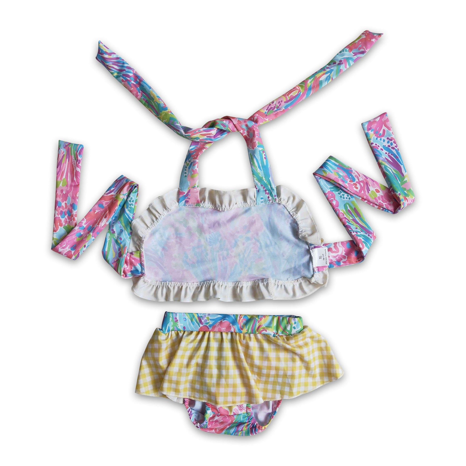 Tie dye print yellow gingham baby girls summer swimsuit