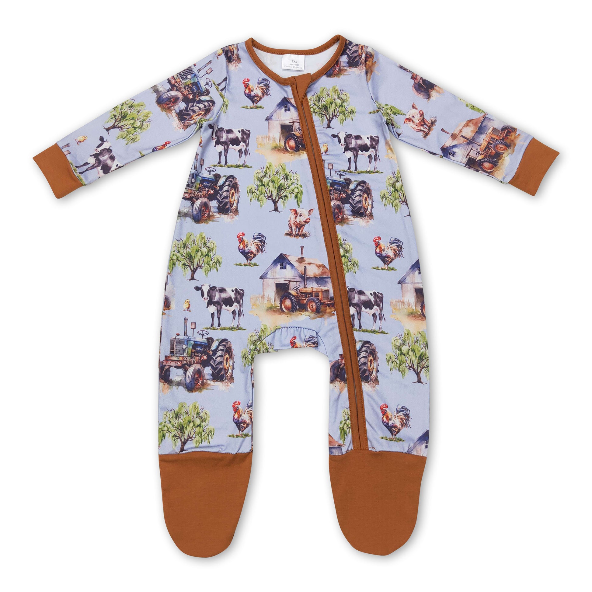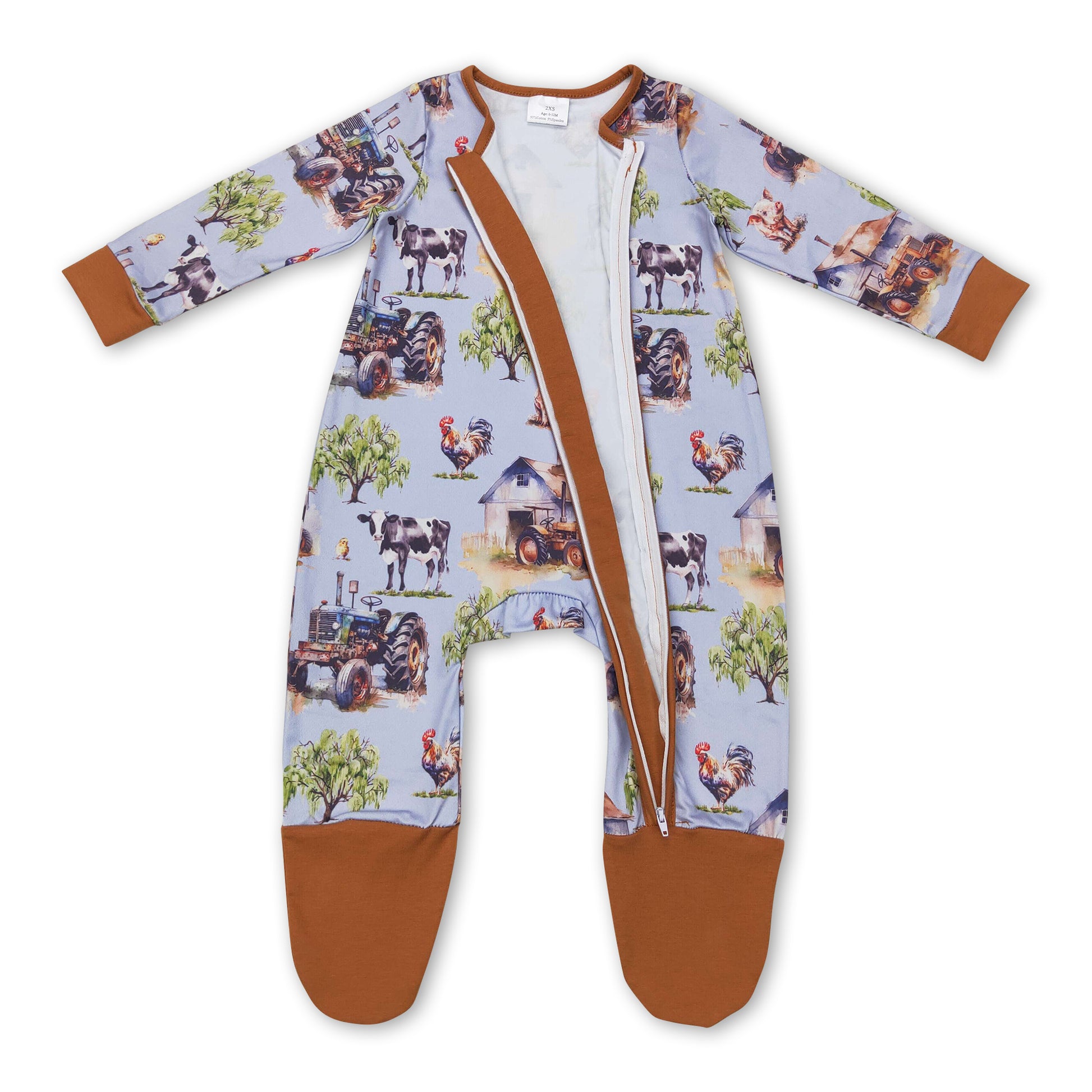Tractor chicken cow pig baby kids farm footed coveralls
