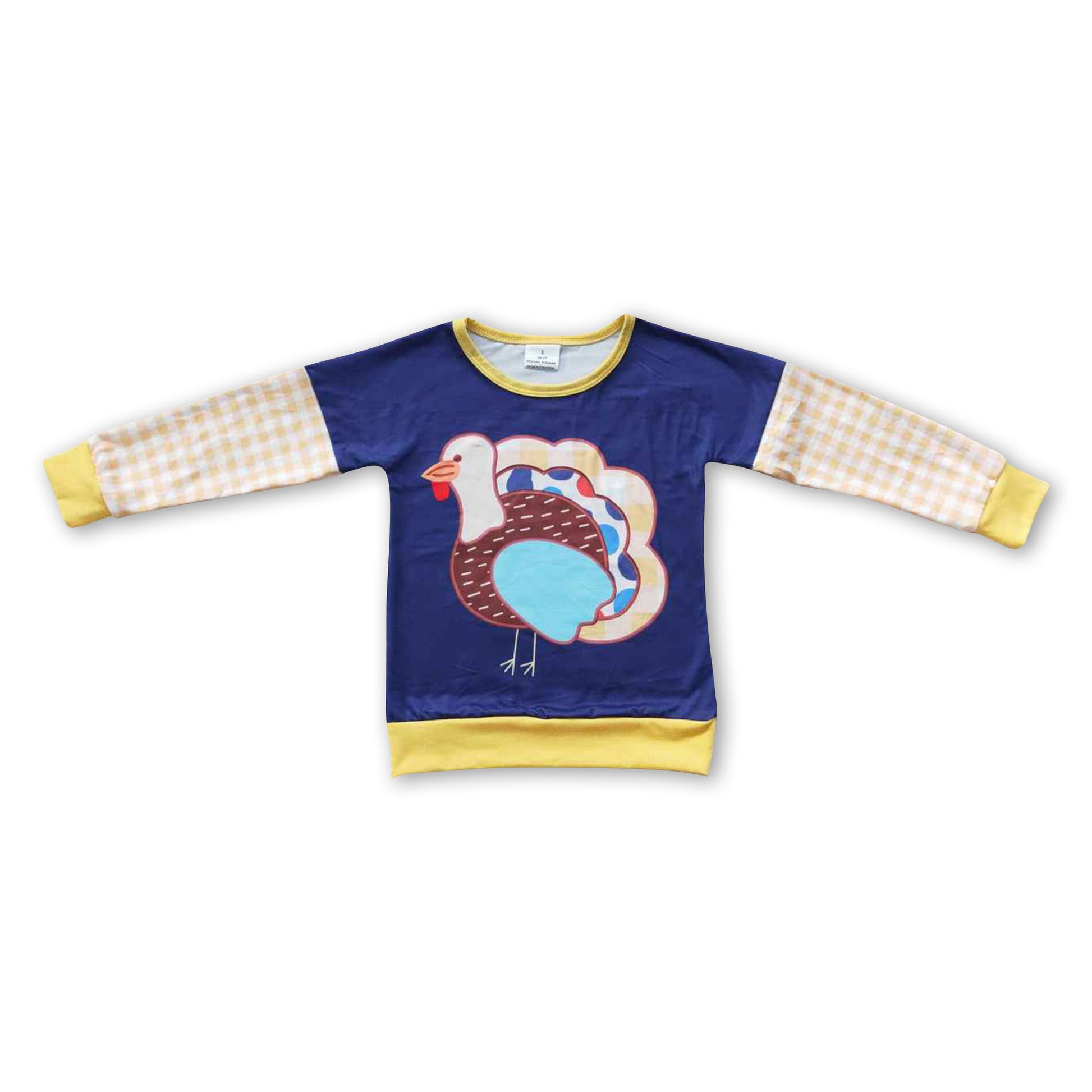 Turkey plaid long sleeves baby kids Thanksgiving shirt