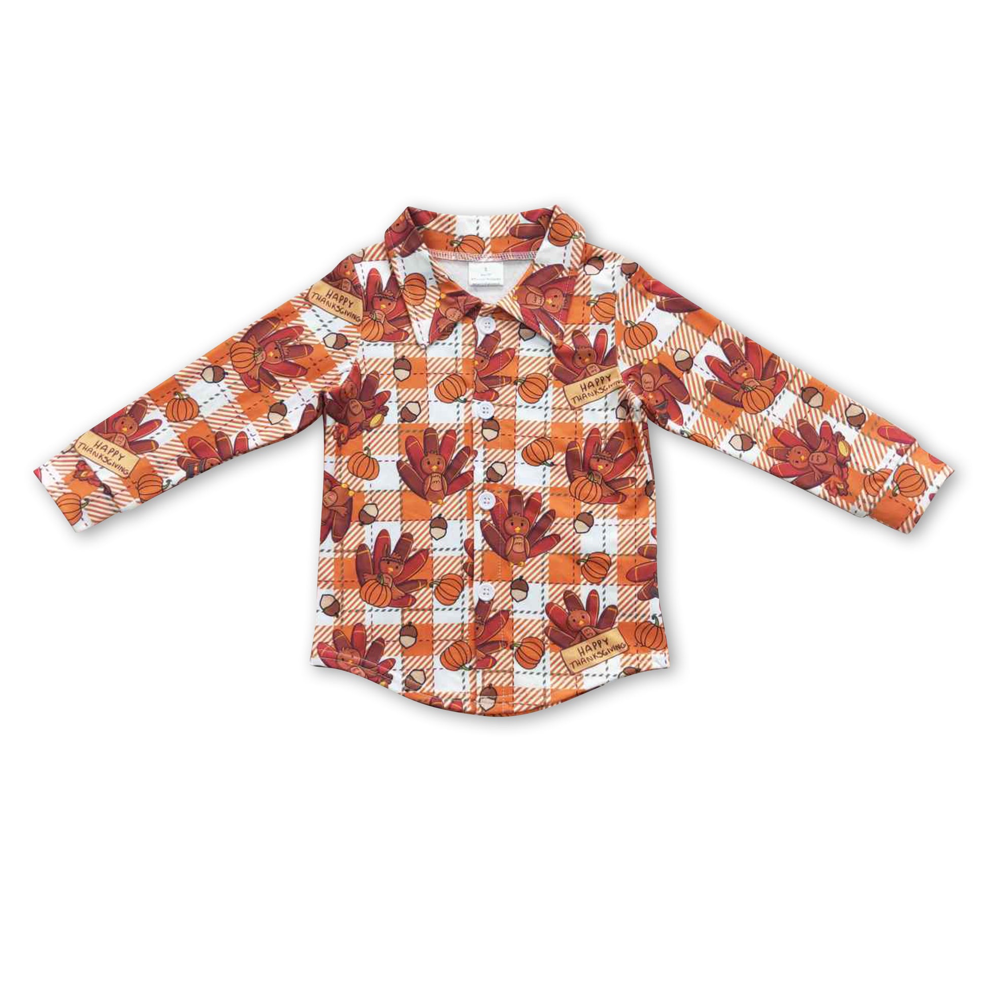 Turkey pumpkin long sleeves baby boy Thanksgiving shirt