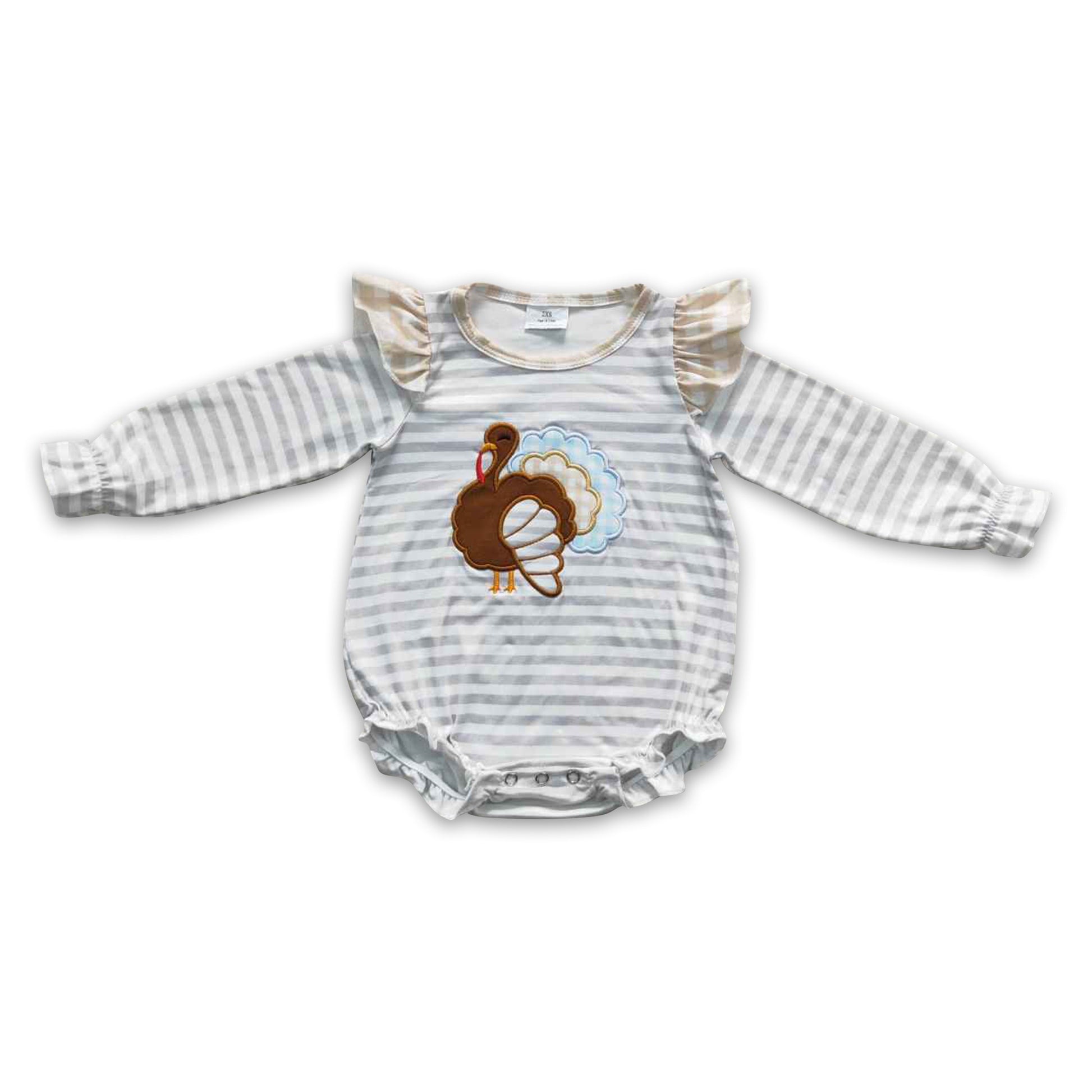 Turkey stripe long sleeves baby girls Thanksgiving romper