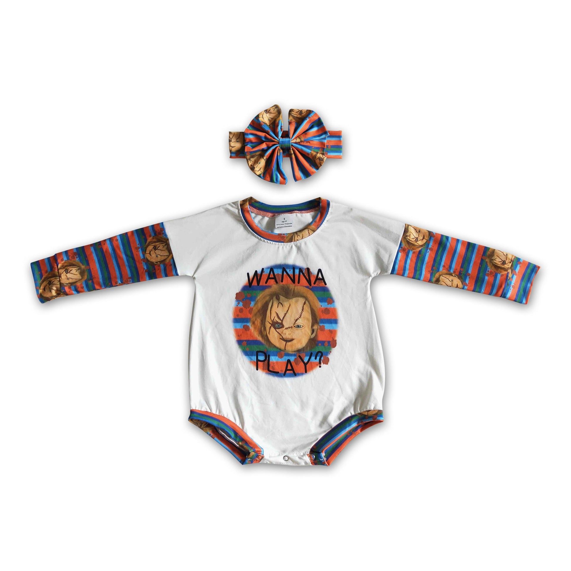 Wanna play stripe baby girls Halloween romper