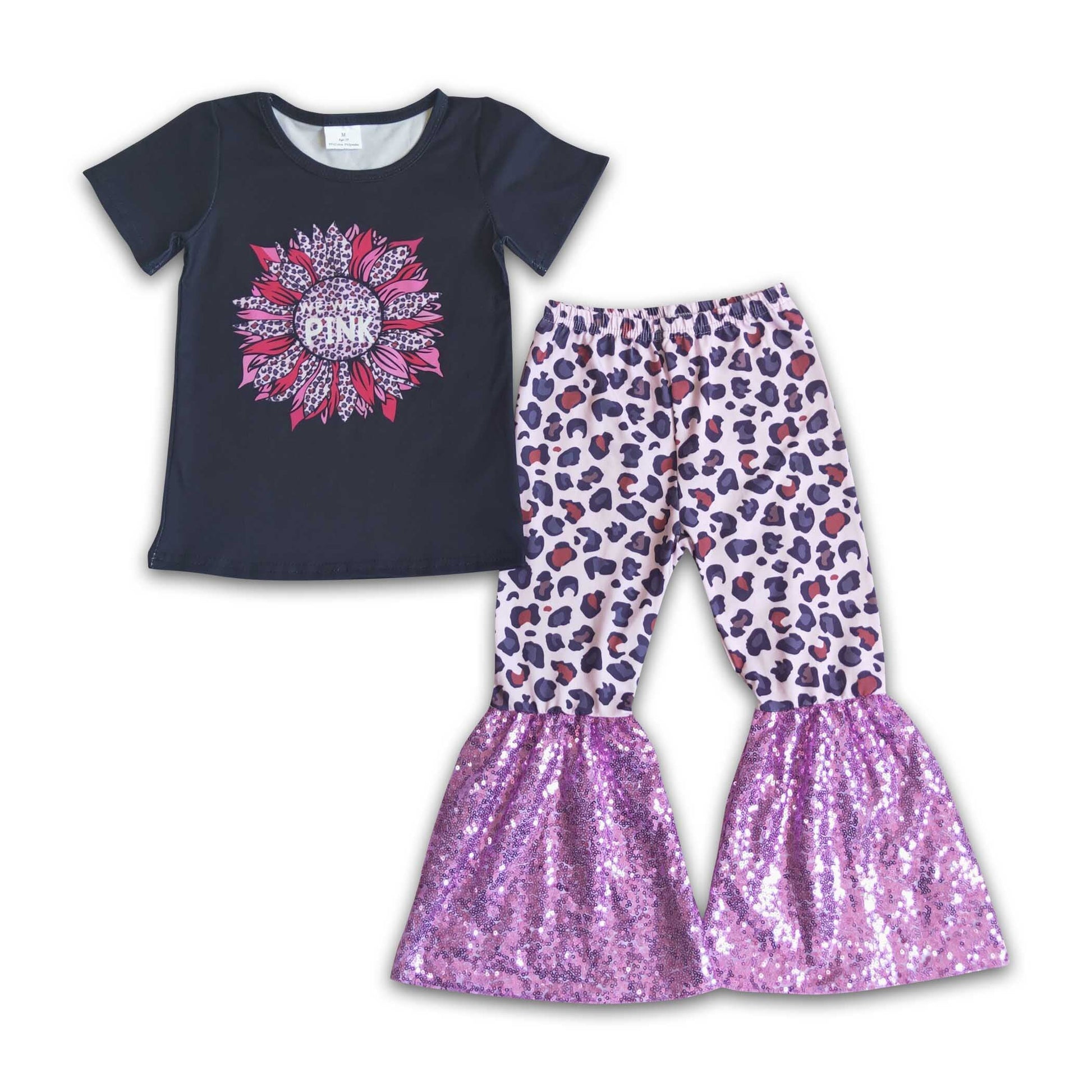 We wear pink leopard sunflower shirt sequin pants girls outfits